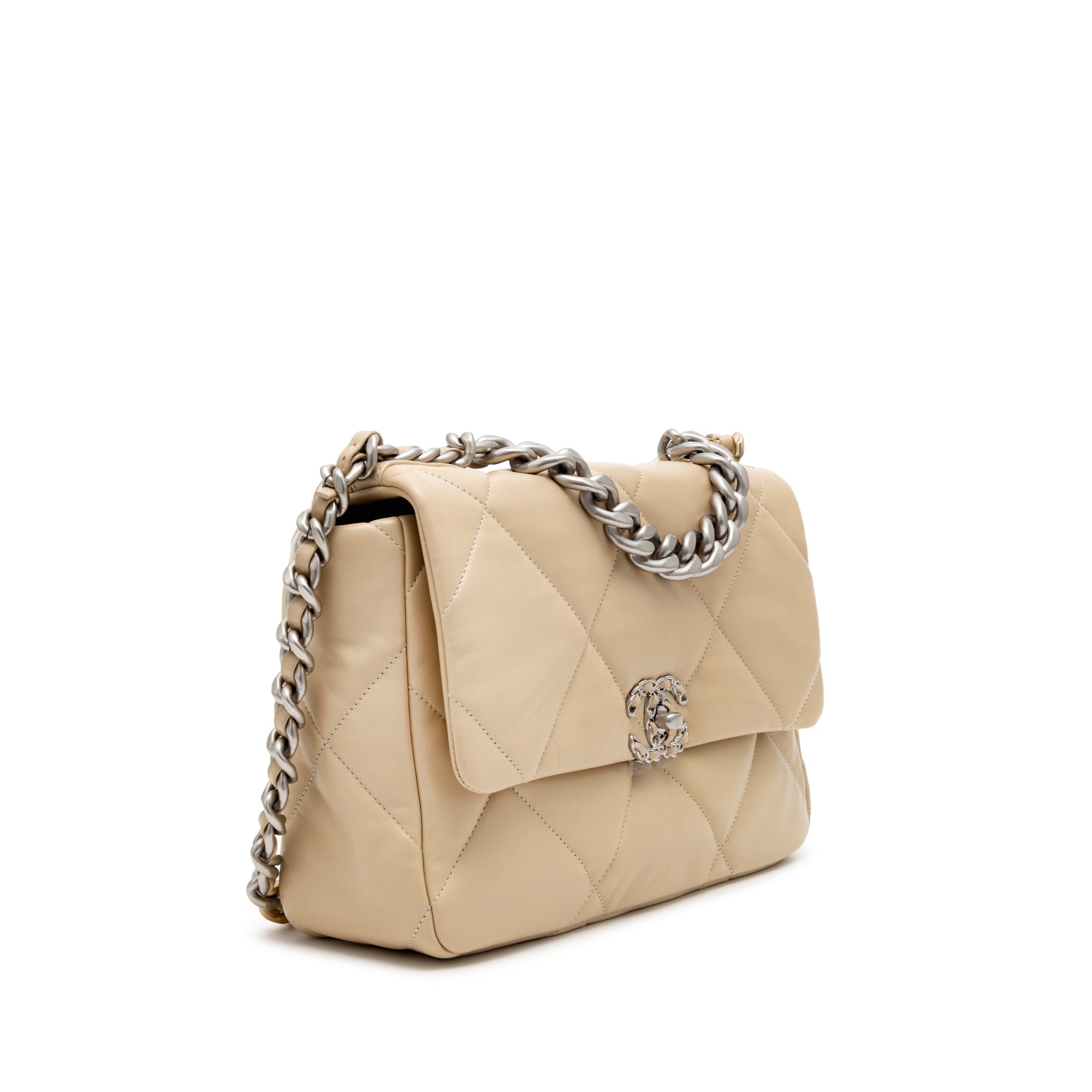 Beige Quilted Lambskin Large 19 Flap Bag Silver Hardware, 2022