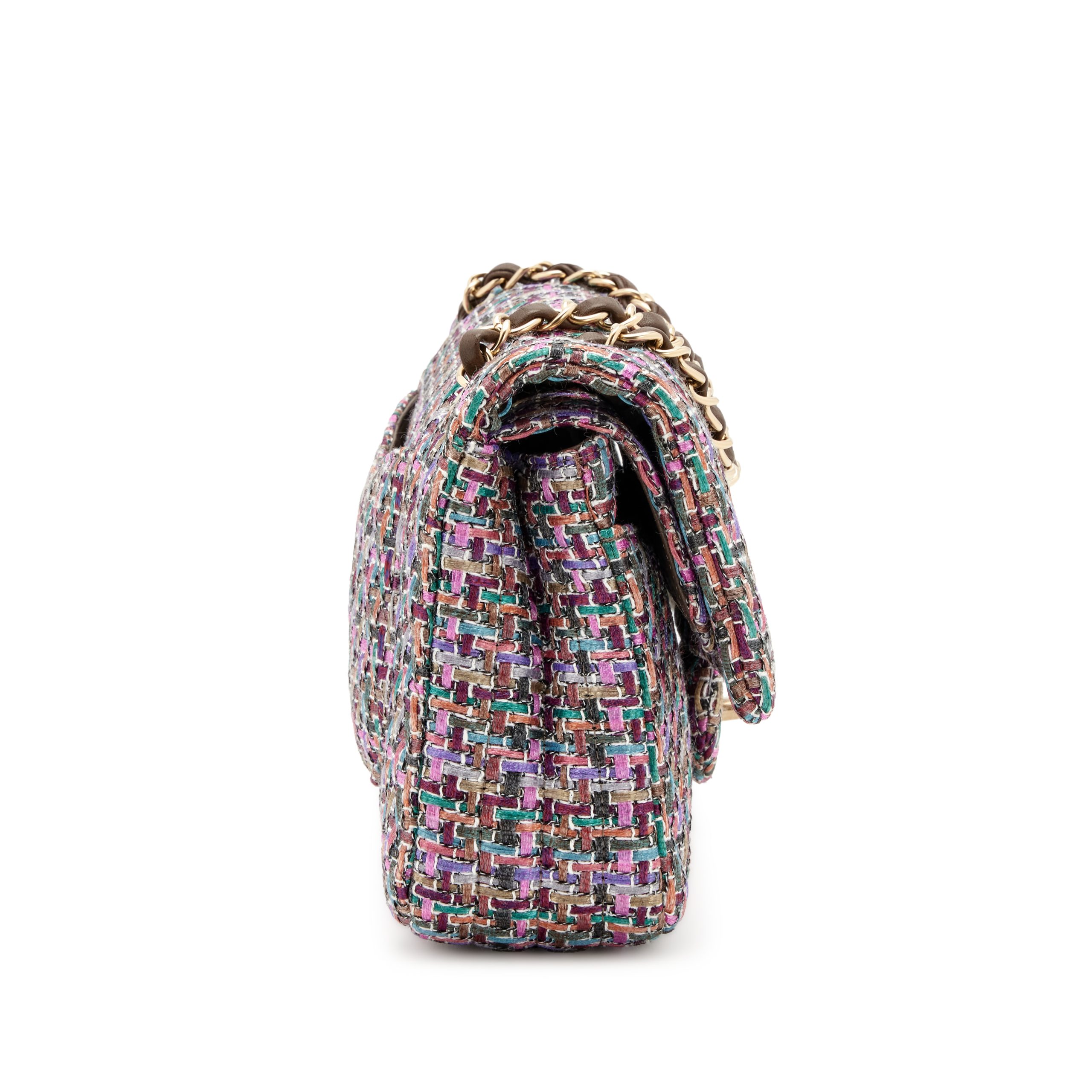 Lilac Multicolor Tweed Chevron Quilted Medium Double Flap Brushed Gold Hardware, 2015