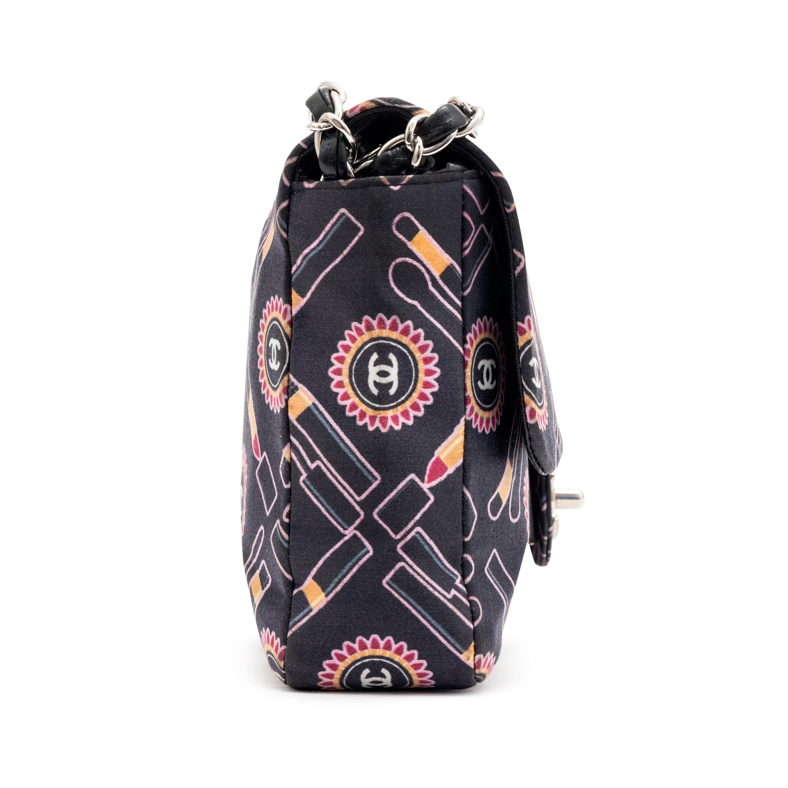 Lipstick Print Satin Medium Single Flap Bag Silver Hardware, 2004-2005