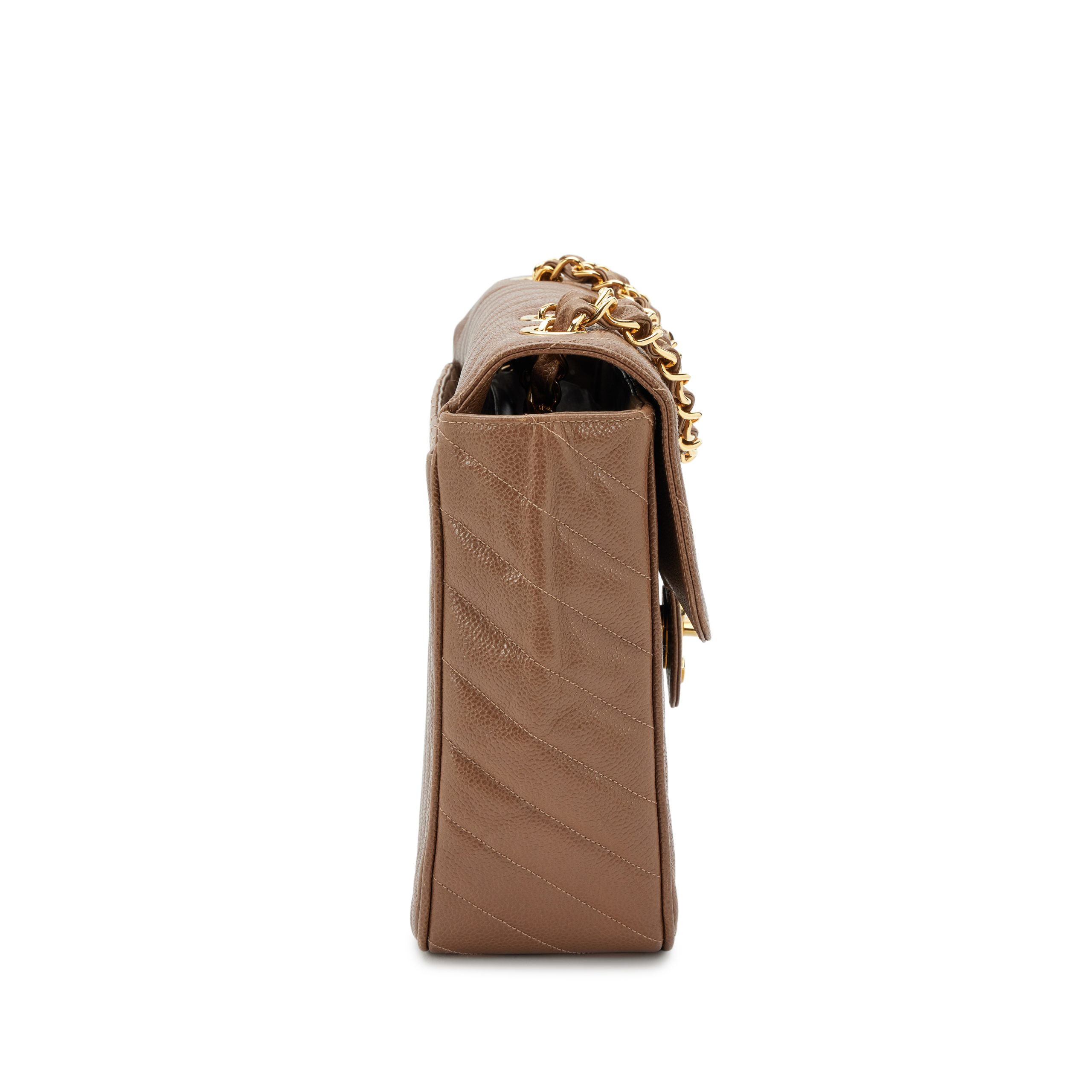 Taupe Brown Chevron Caviar Maxi Jumbo XL Classic Single Flap Bag Gold Hardware, 1991-1994