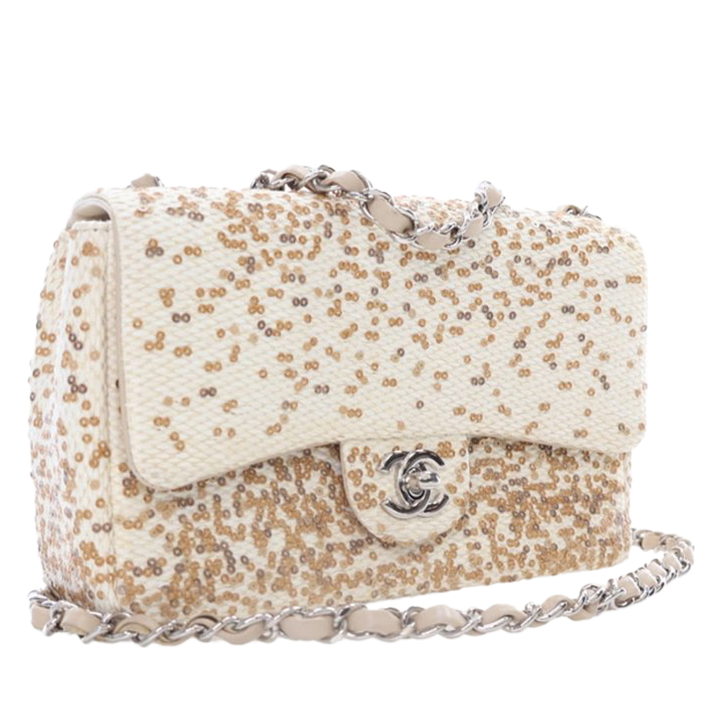 Beige Raffia and Sequin Small Single Flap Bag Silver Hardware, 2013-2014