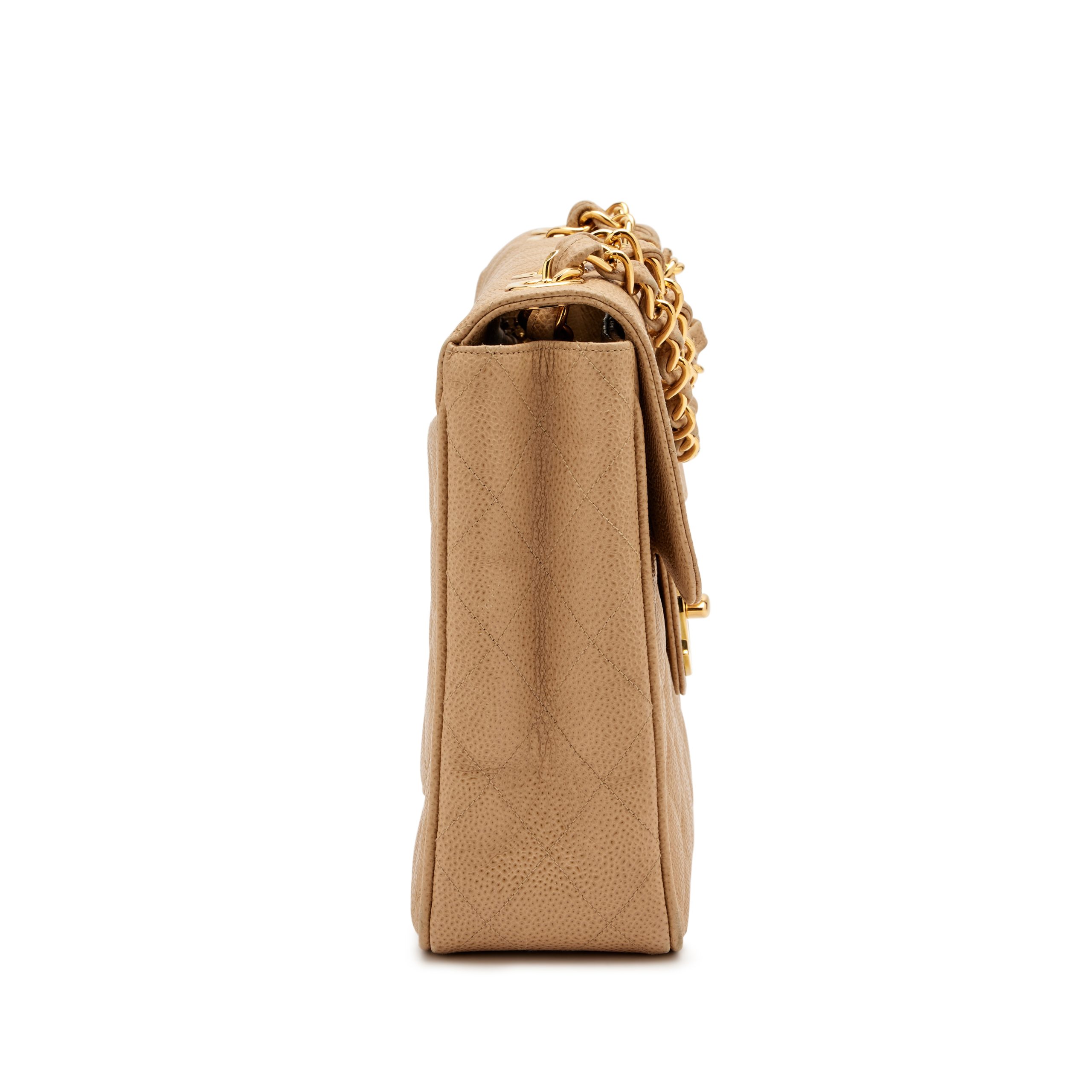 Beige Quilted Caviar Jumbo Classic Single Flap Bag Oversize XL CC Gold Hardware, 1994-1996