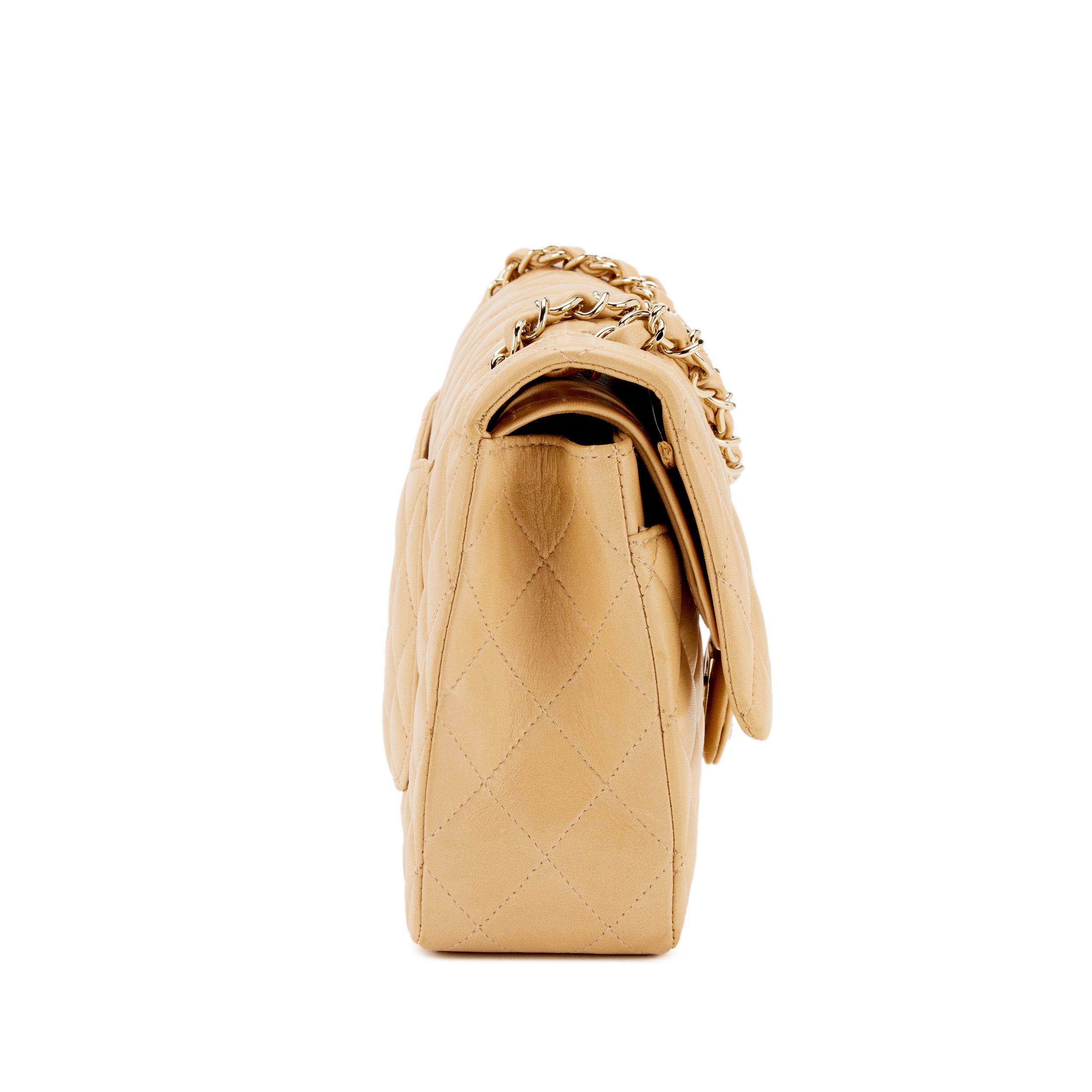 Beige Quilted Lambskin Old Medium Double Flap Gold Hardware, 2003-2004