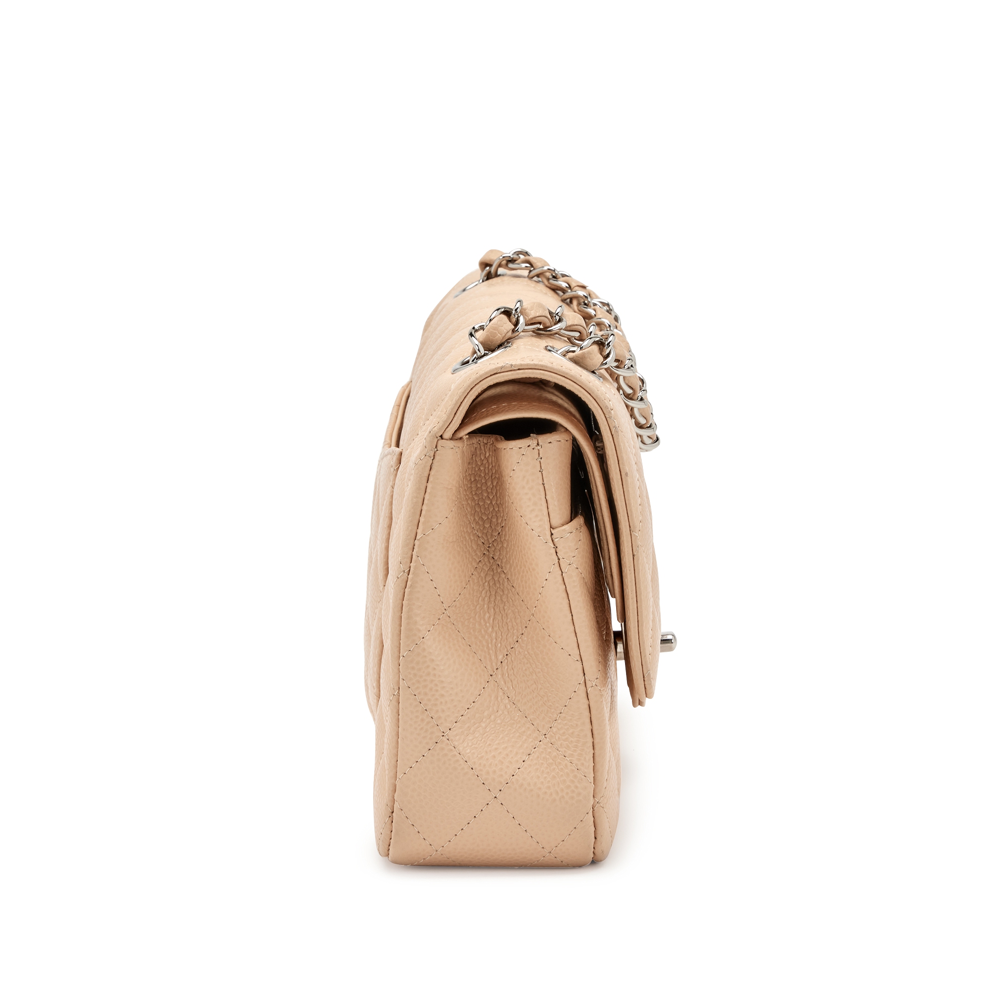 Beige Clair Quilted Caviar Medium Classic Double Flap Bag Silver Hardware, 2014-2015
