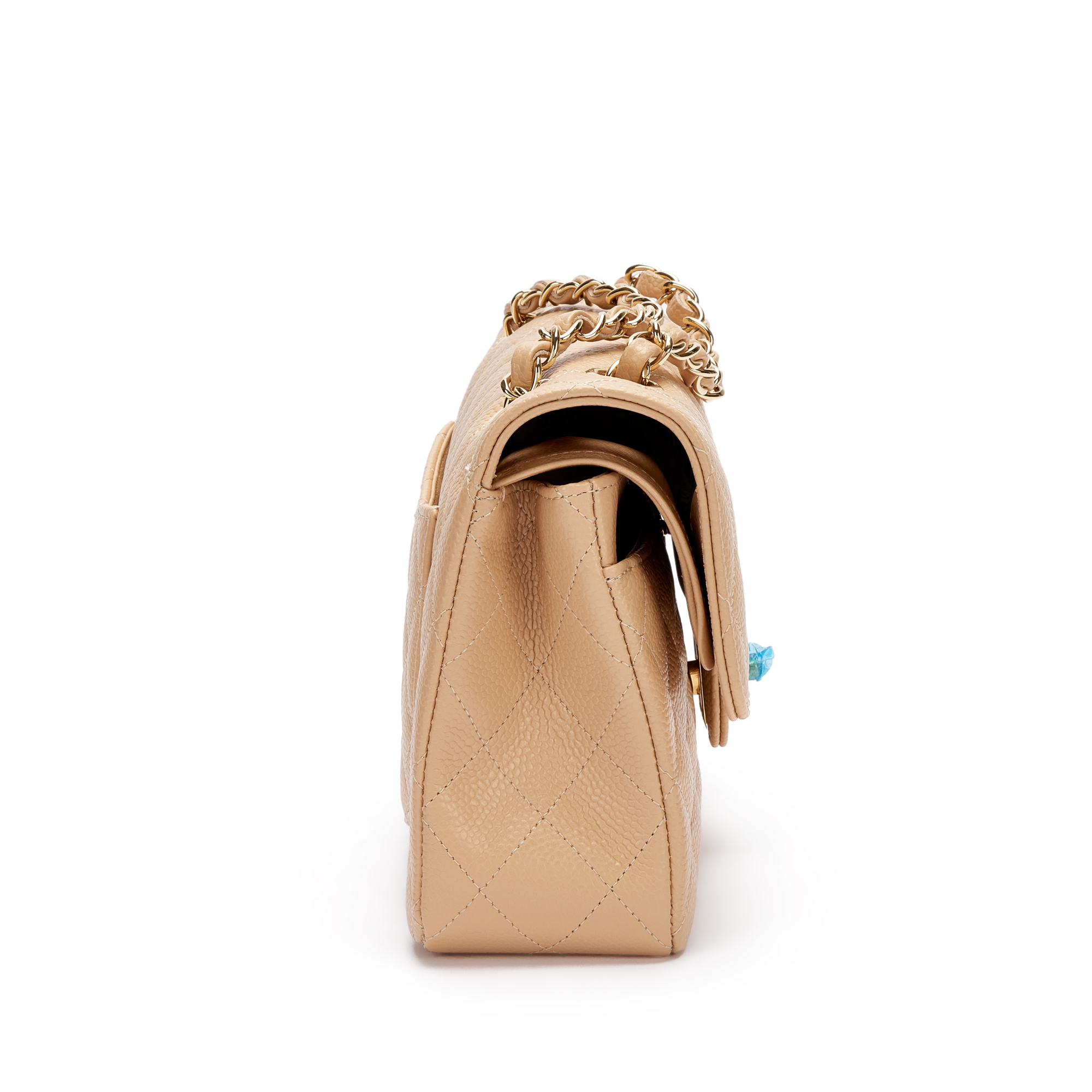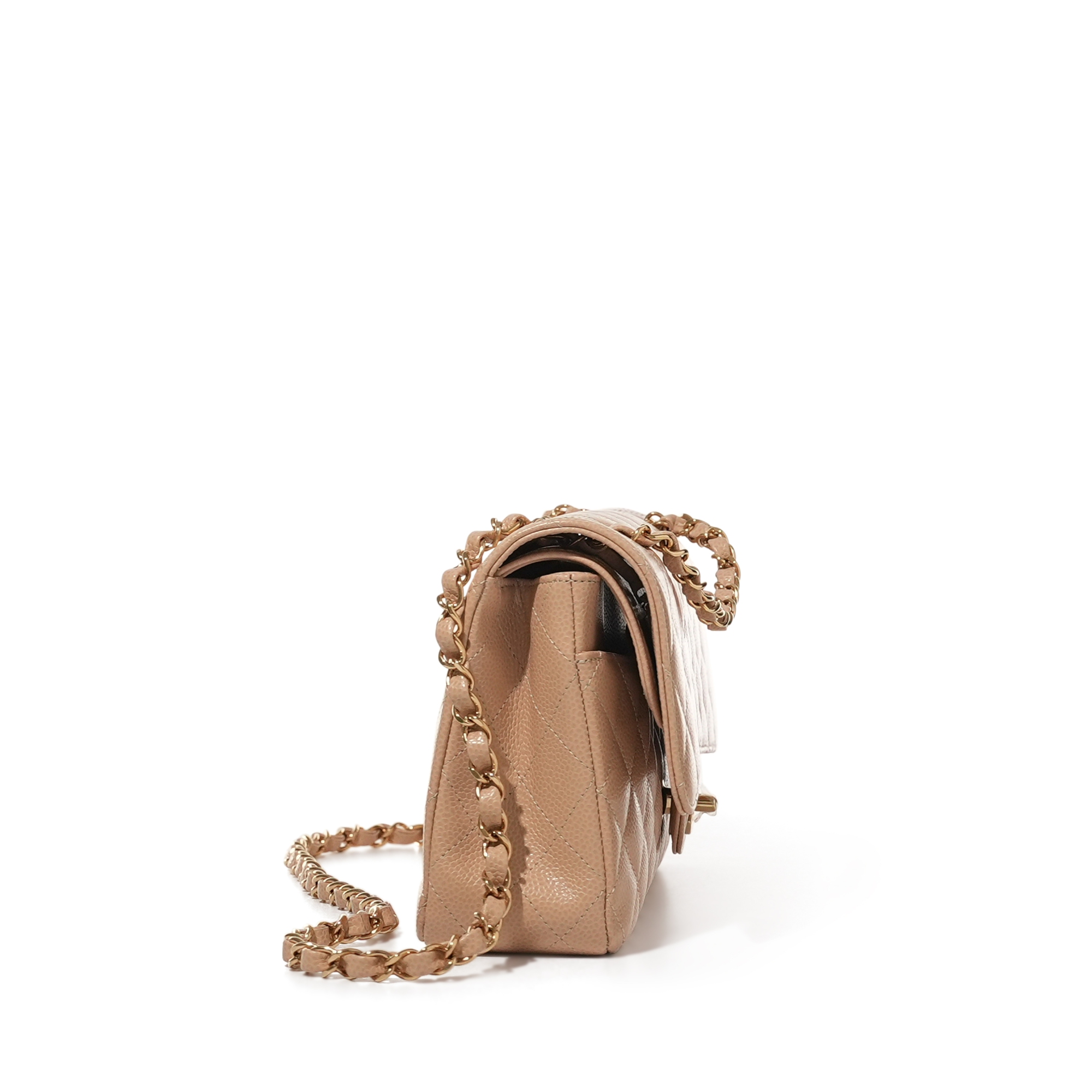 Beige Quilted Caviar Small Classic Double Flap Gold Hardware