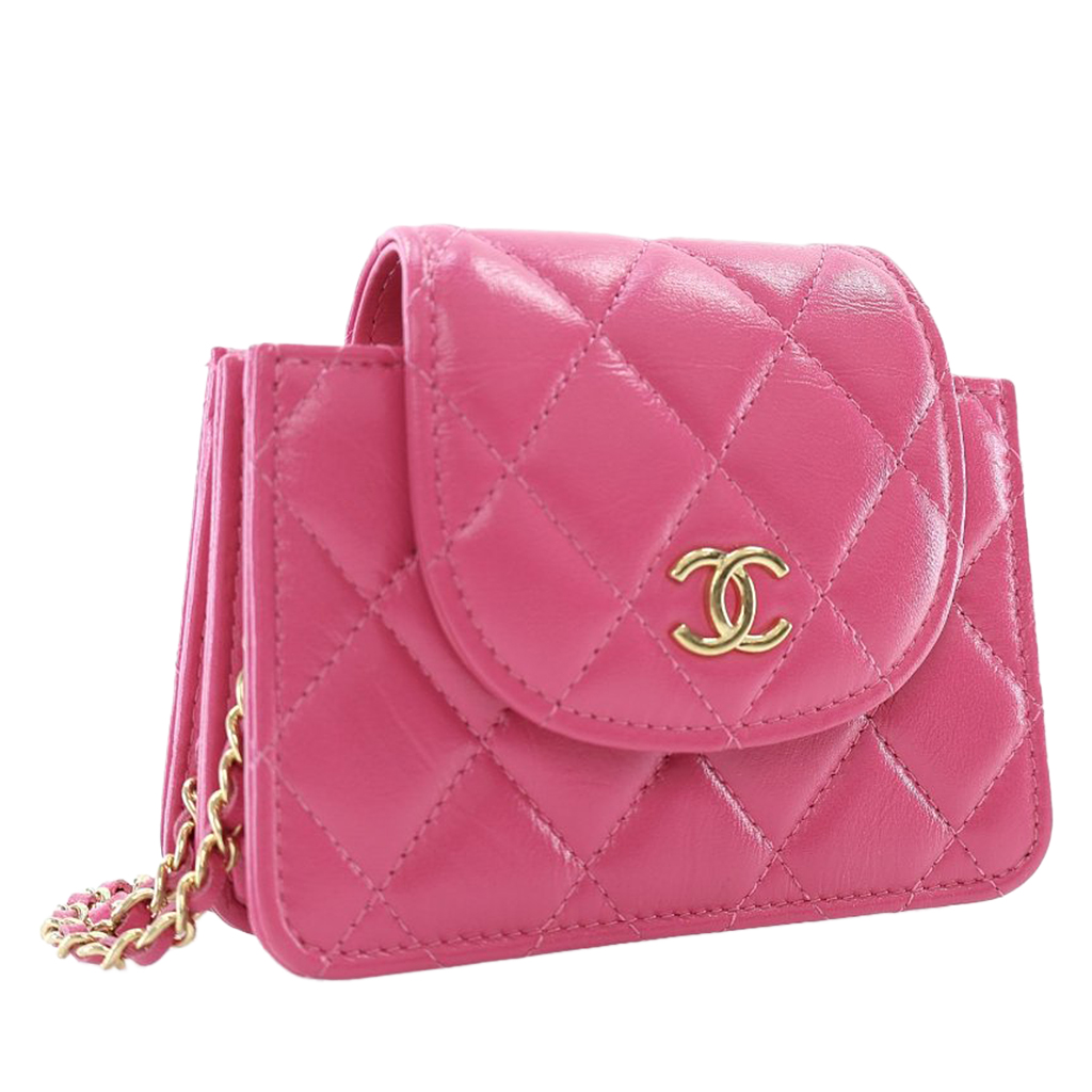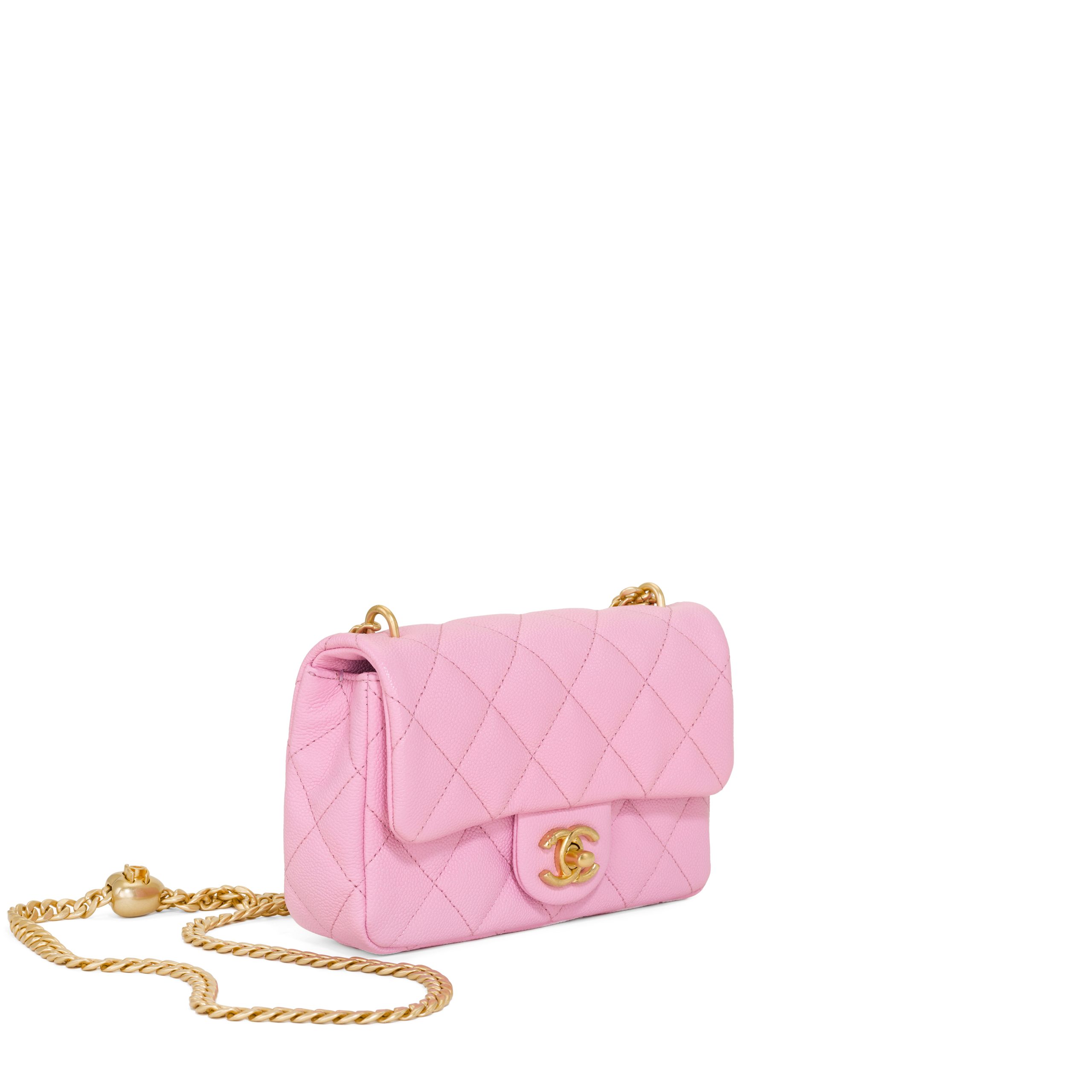 Pink Quilted Lambskin Mini Flap Clutch On Chain Aged Gold Hardware, 2020s
