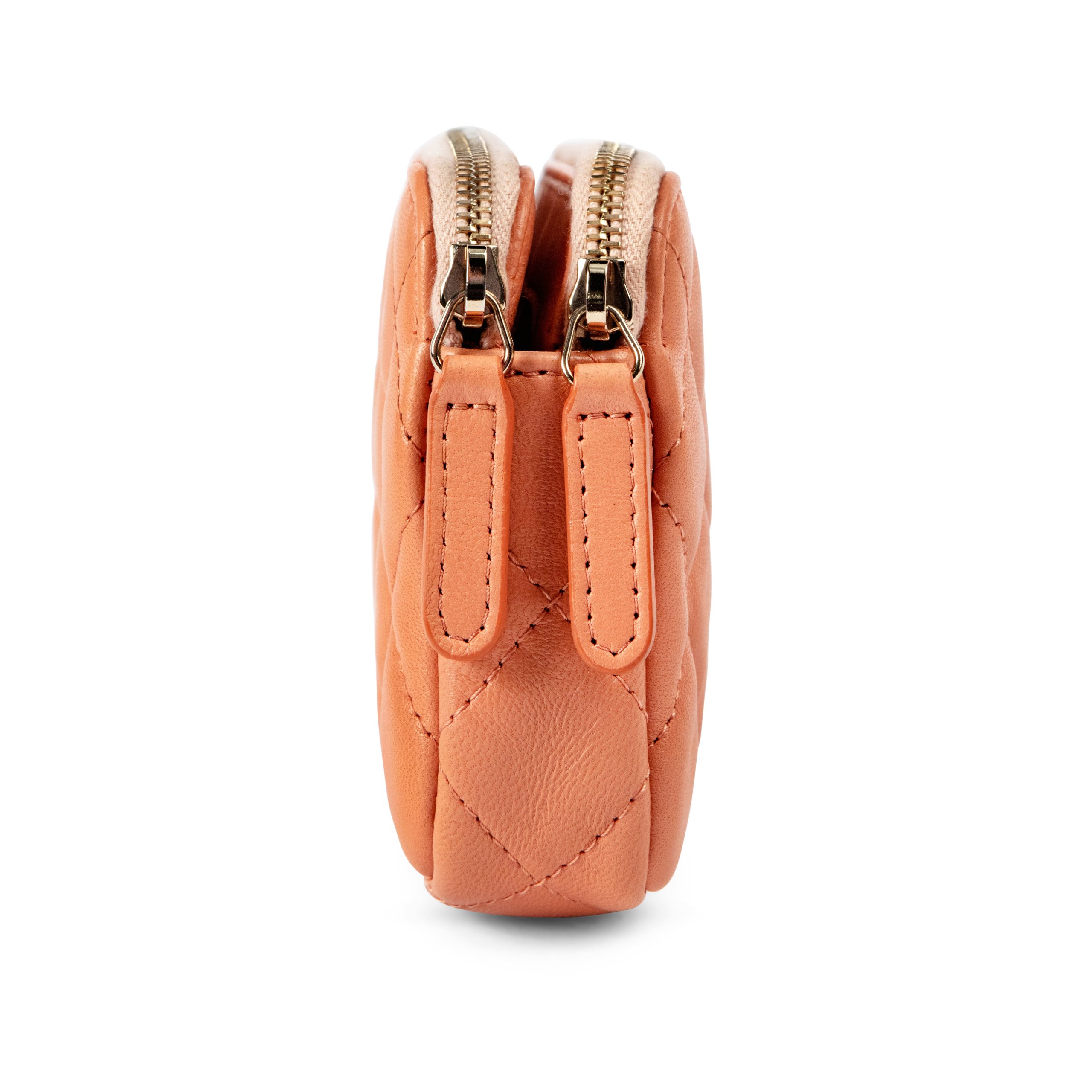 Pink Quilted Lambskin Double Zip Clutch With Chain Gold Hardware, 2018