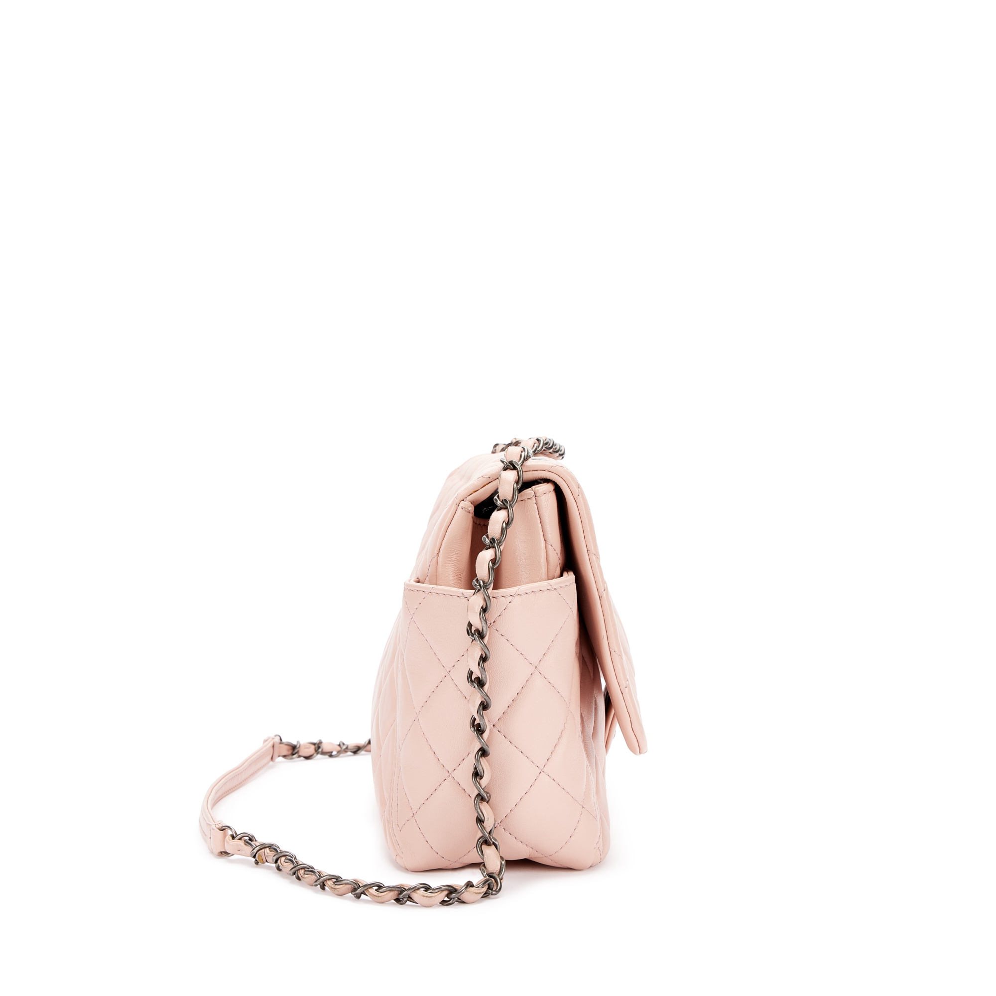 Pink Quilted Lambskin Flap Bag Ruthenium Hardware
