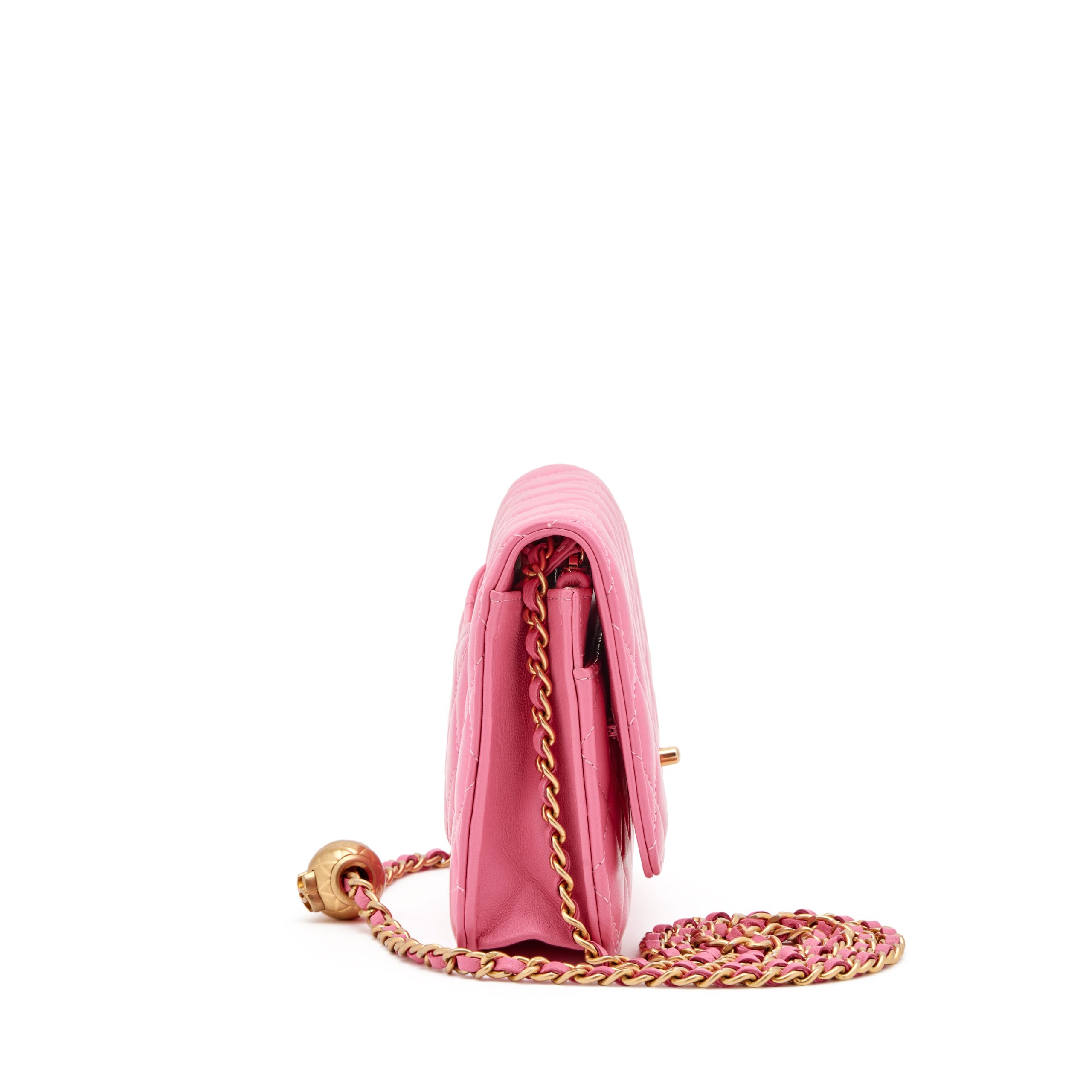 Pink Quilted Lambskin Pearl Crush Wallet on Chain Gold Hardware, 2019