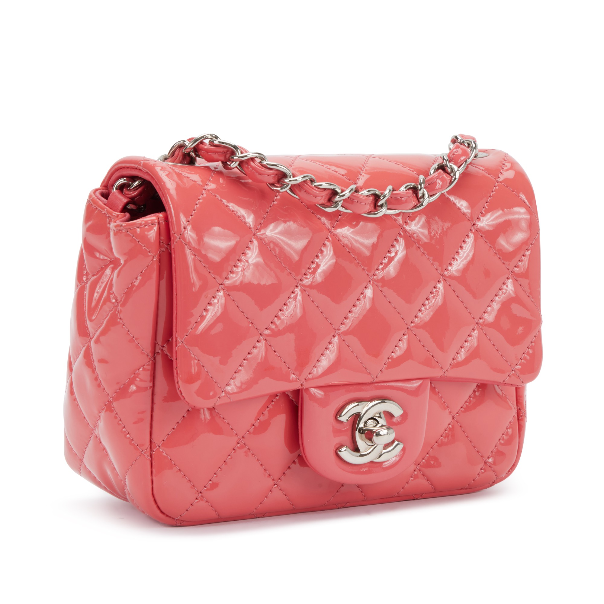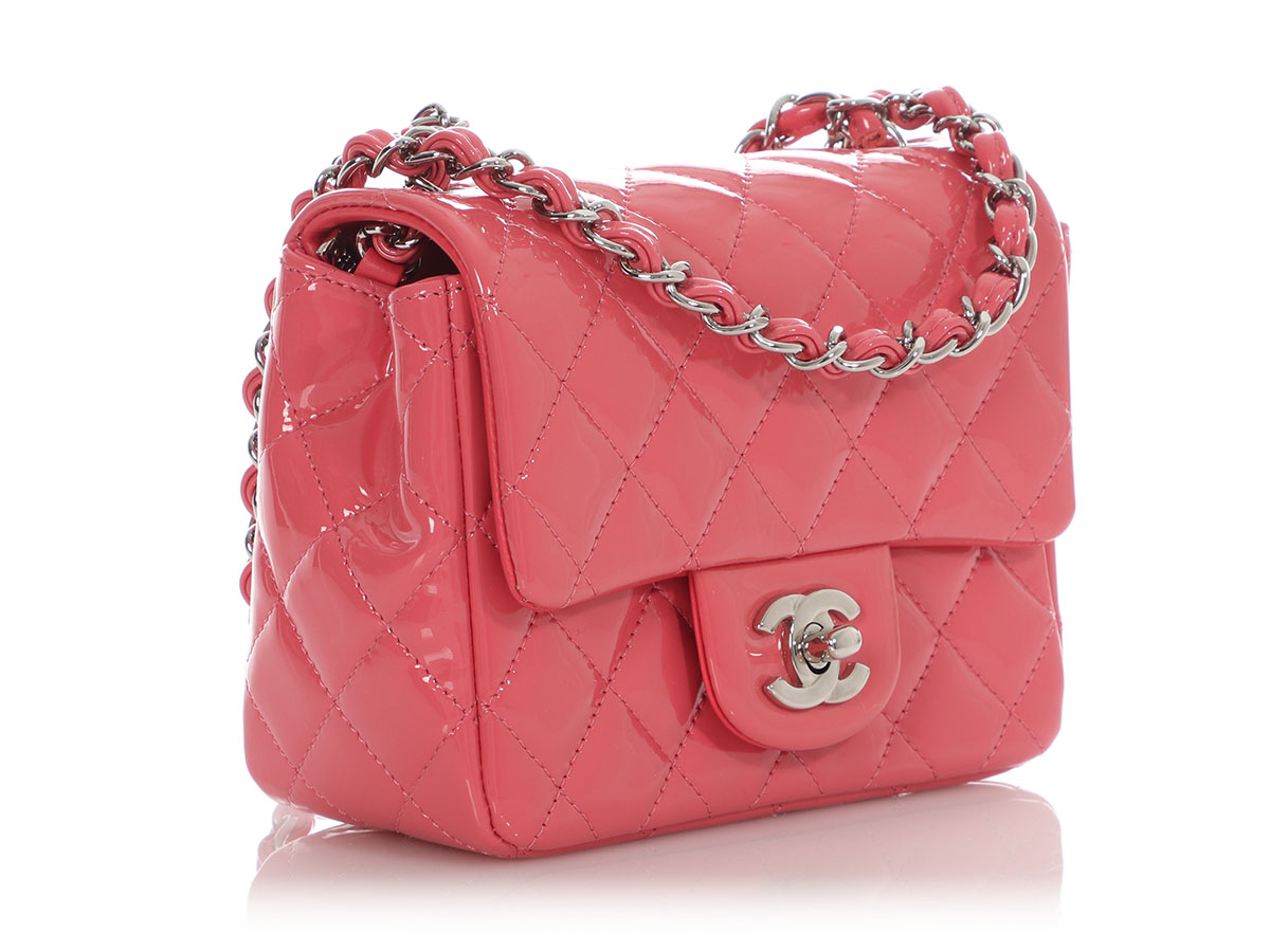 Pink Quilted Patent Leather Mini Square Flap Bag Silver Hardware, 2012-2013
