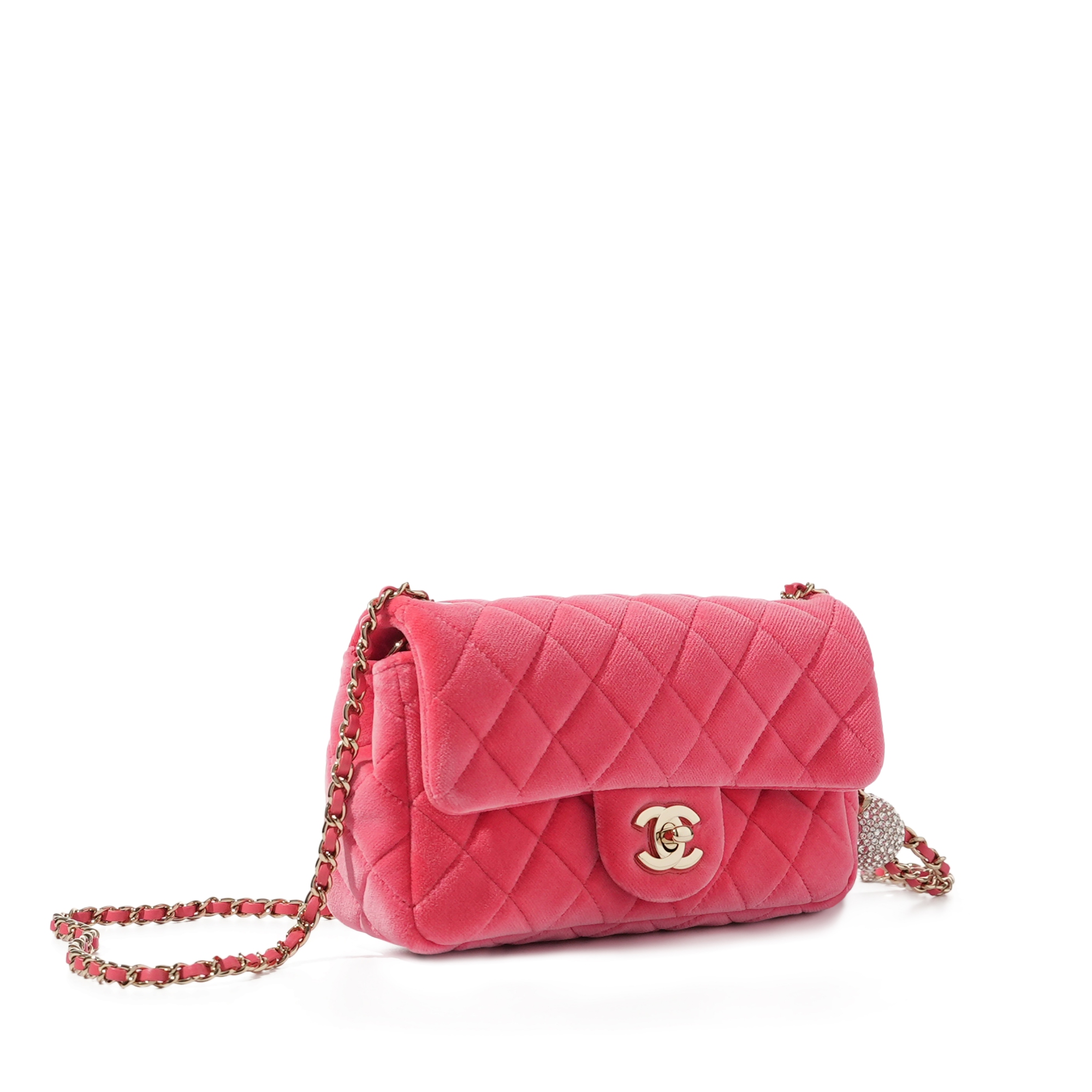 Pink Velvet Mini Flap Bag Pearl Crush Gold Hardware, 2020