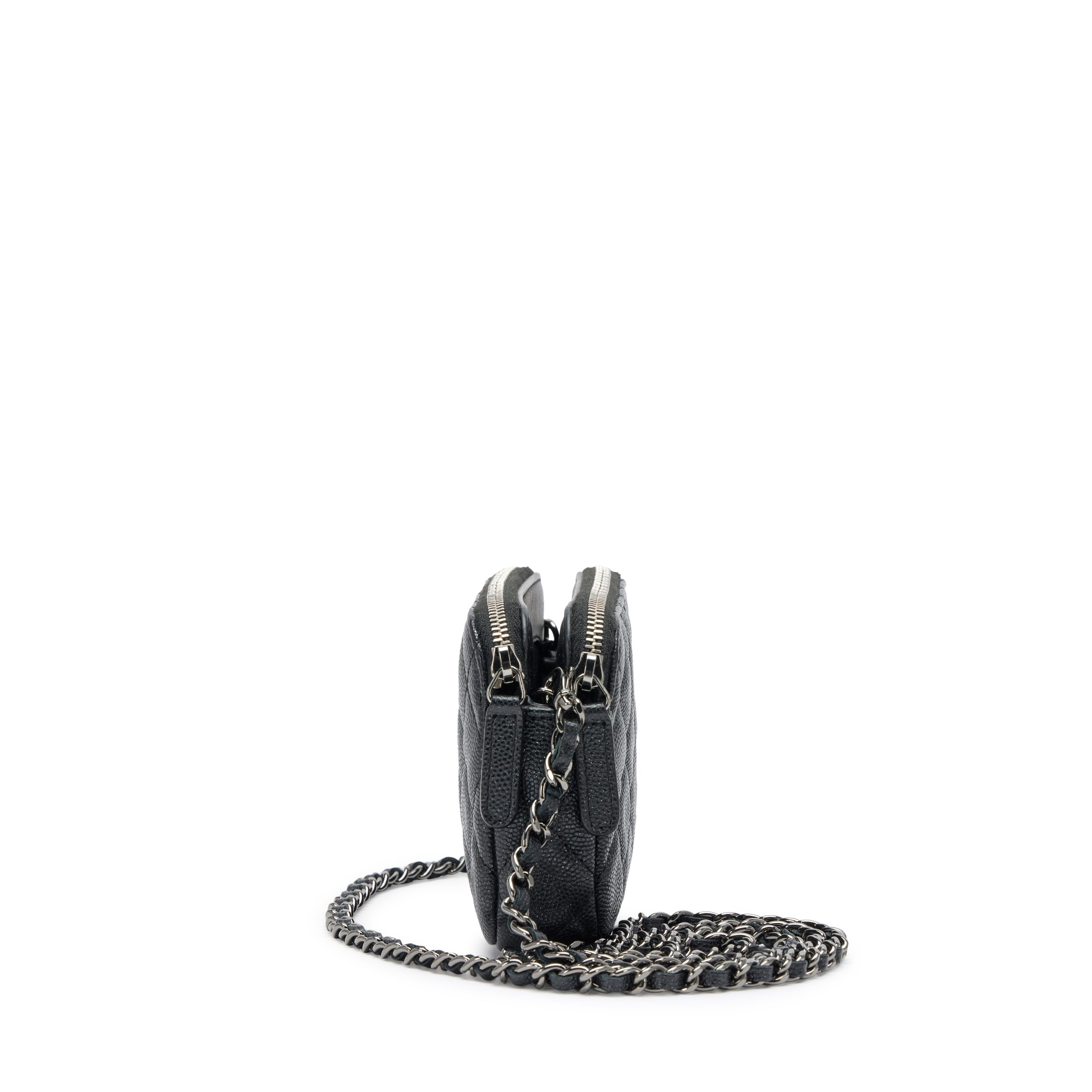 Black Iridescent Quilted Caviar Small Clutch With Chain Silver Hardware, 2018