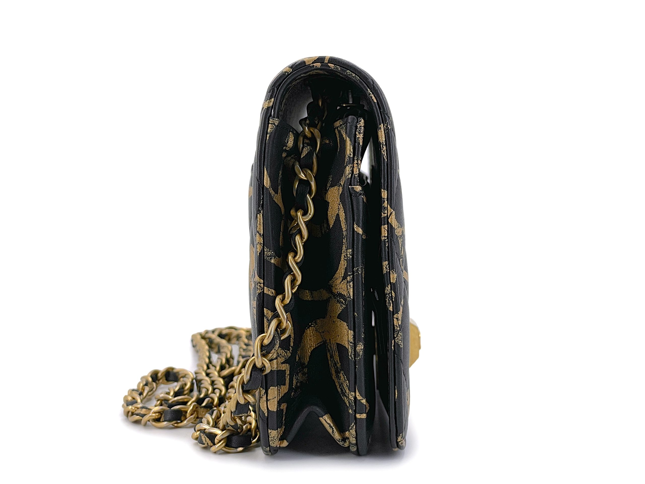 Black Graffiti Printed Calfskin Wallet on Chain Aged Gold Hardware, 2018-2019