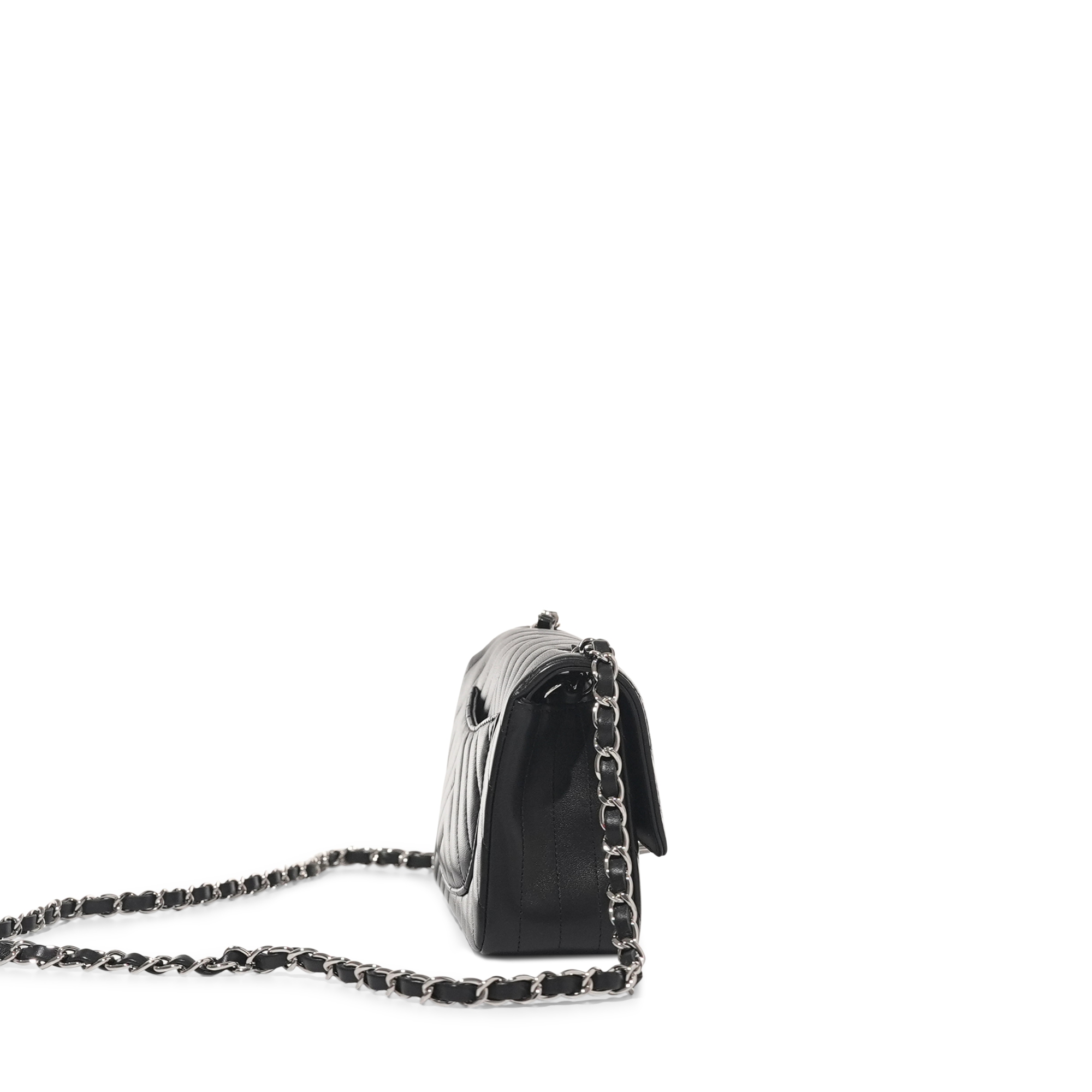 Black Chevron Lambskin Flap Bag Silver Hardware, 2020-21