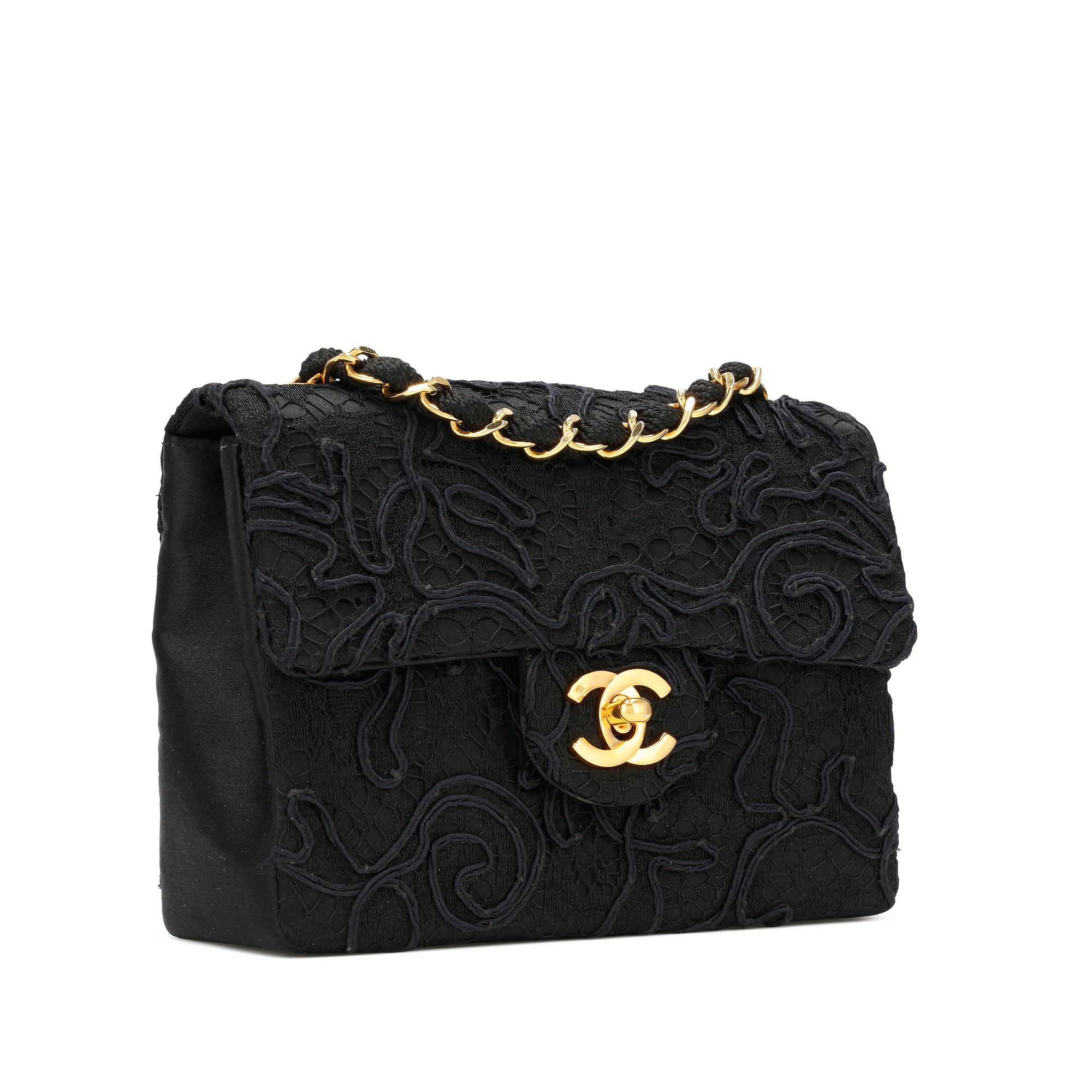 Black Lace Satin Mini Square Classic Single Flap Gold Hardware, 1991