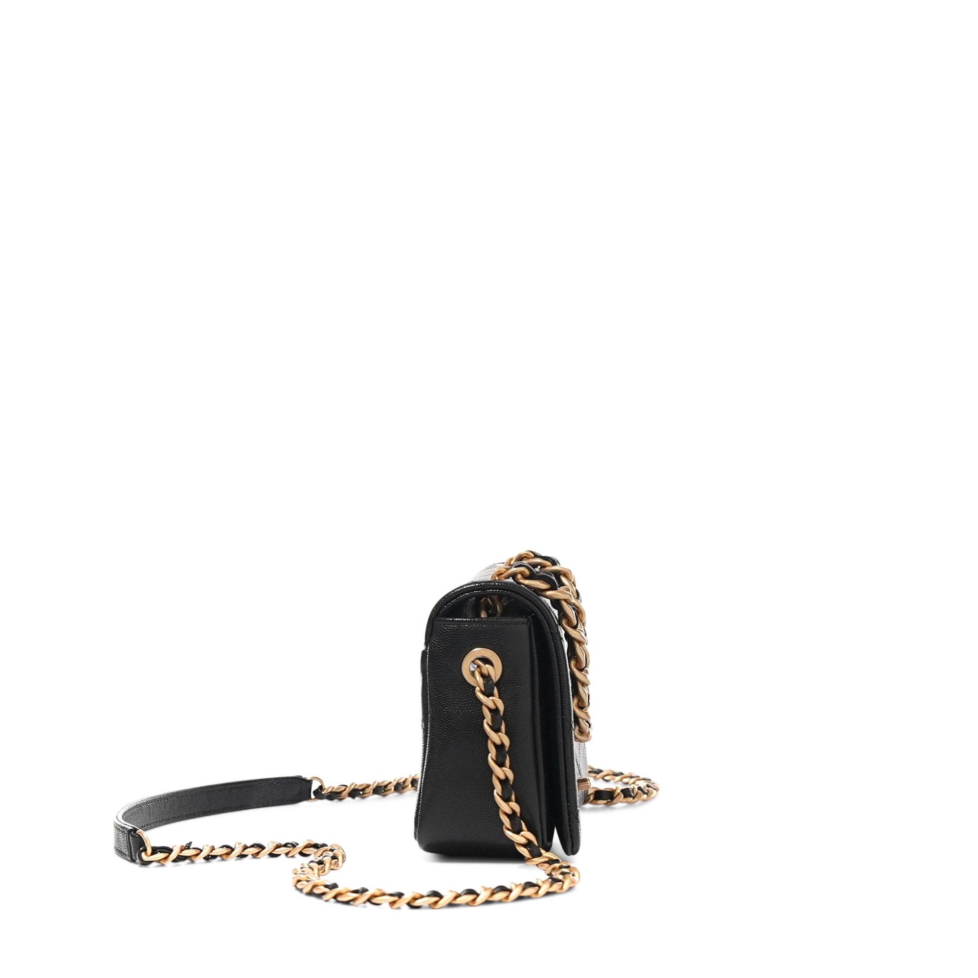 Black Quilted Caviar and Suede Wallet on Chain WOC Aged Gold Hardware, 2017