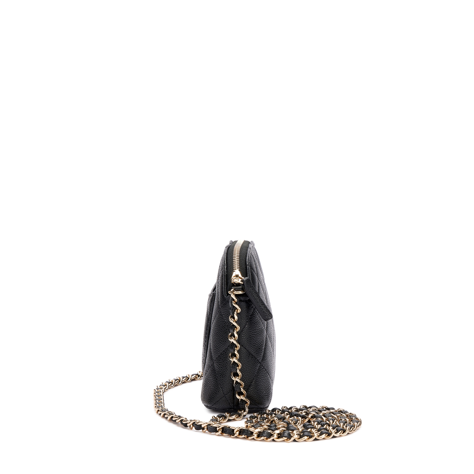 Black Quilted Caviar Business Affinity Clutch On Chain Gold Hardware, 2022
