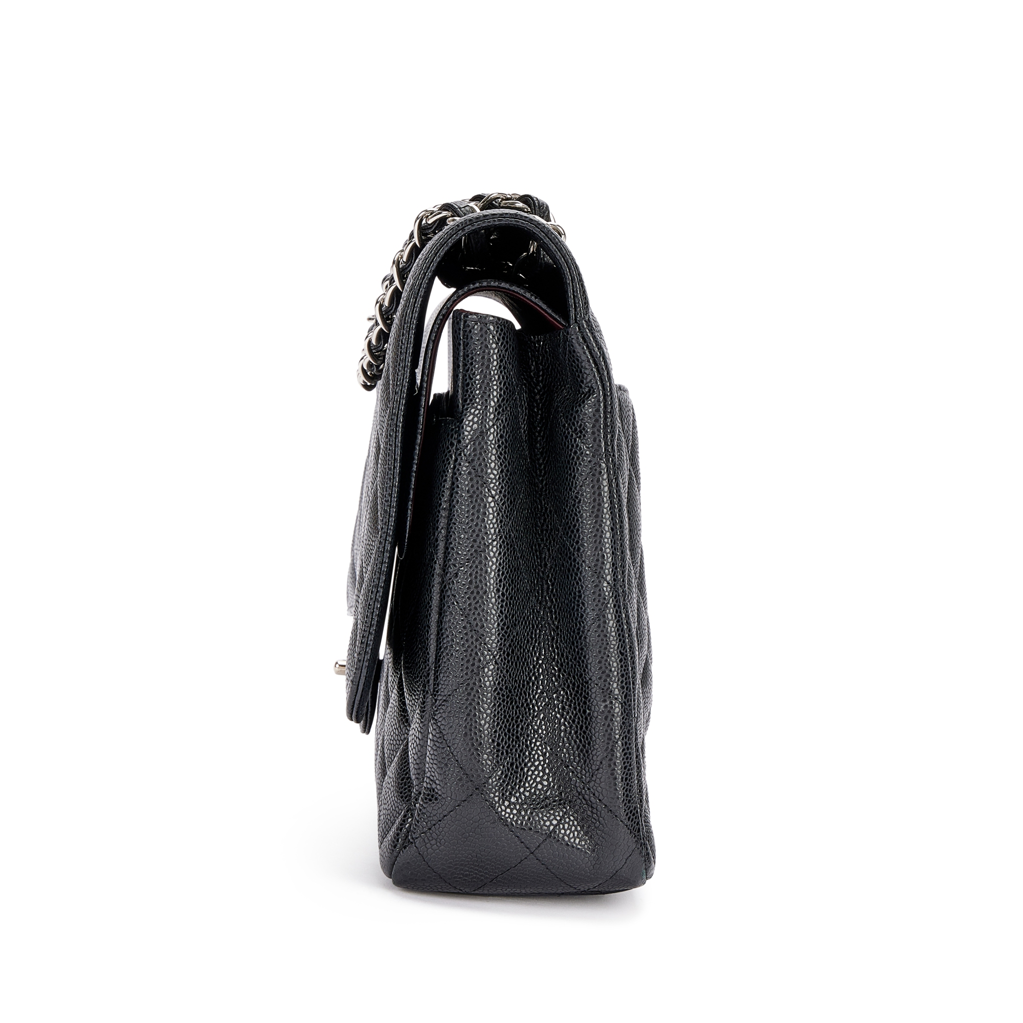 Black Quilted Caviar Jumbo Timeless Classic Double Flap Bag Silver Hardware, 2012
