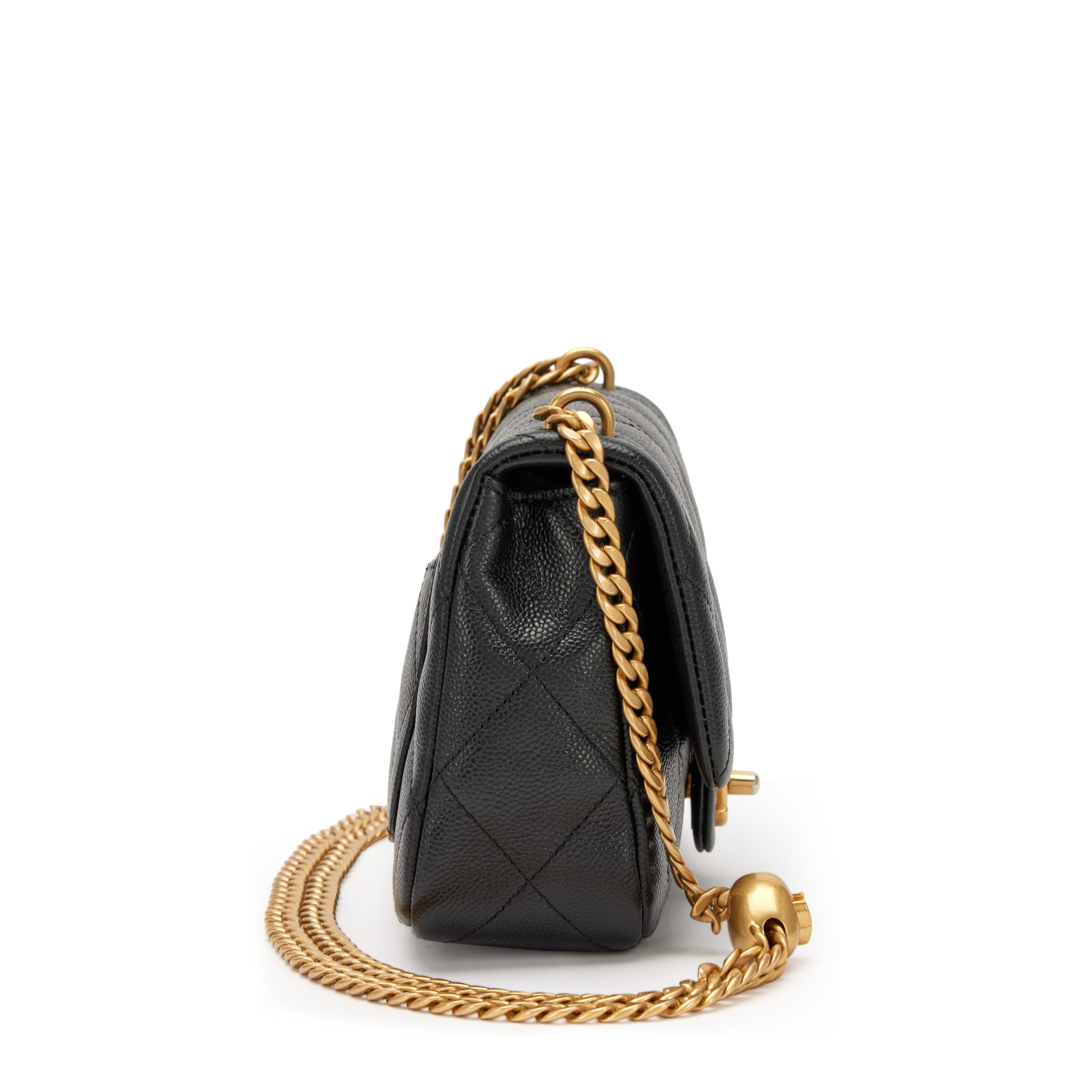 Black Quilted Caviar Mini Vanity Case With Chain Gold Hardware, 2021