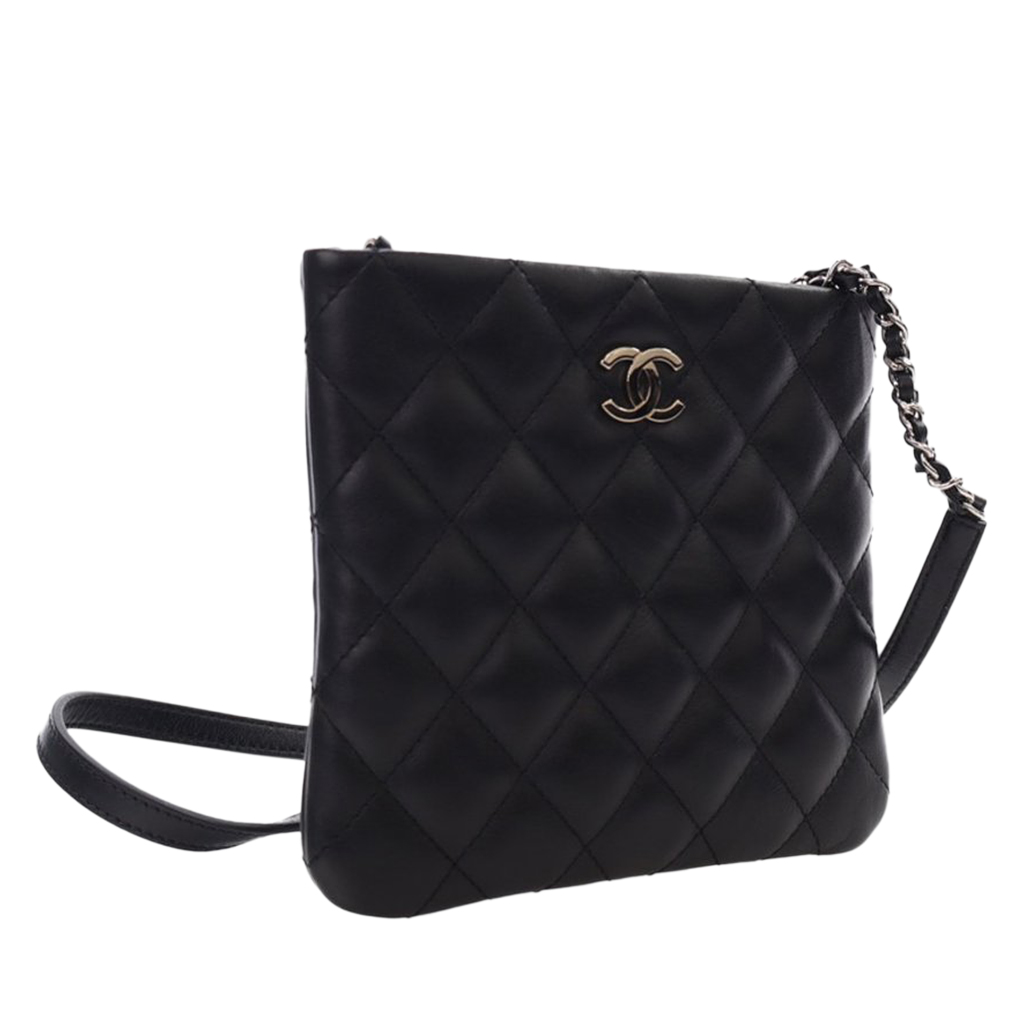 Black Quilted Lambskin Clutch with Chain Pale Gold Hardware, 2022