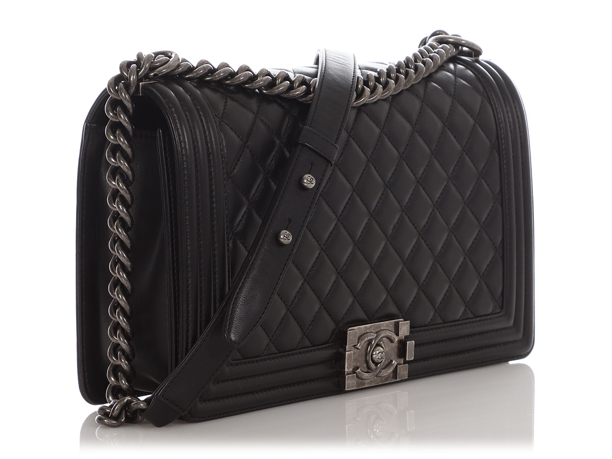 Black Quilted Lambskin Medium Boy Bag Ruthenium Hardware, 2019