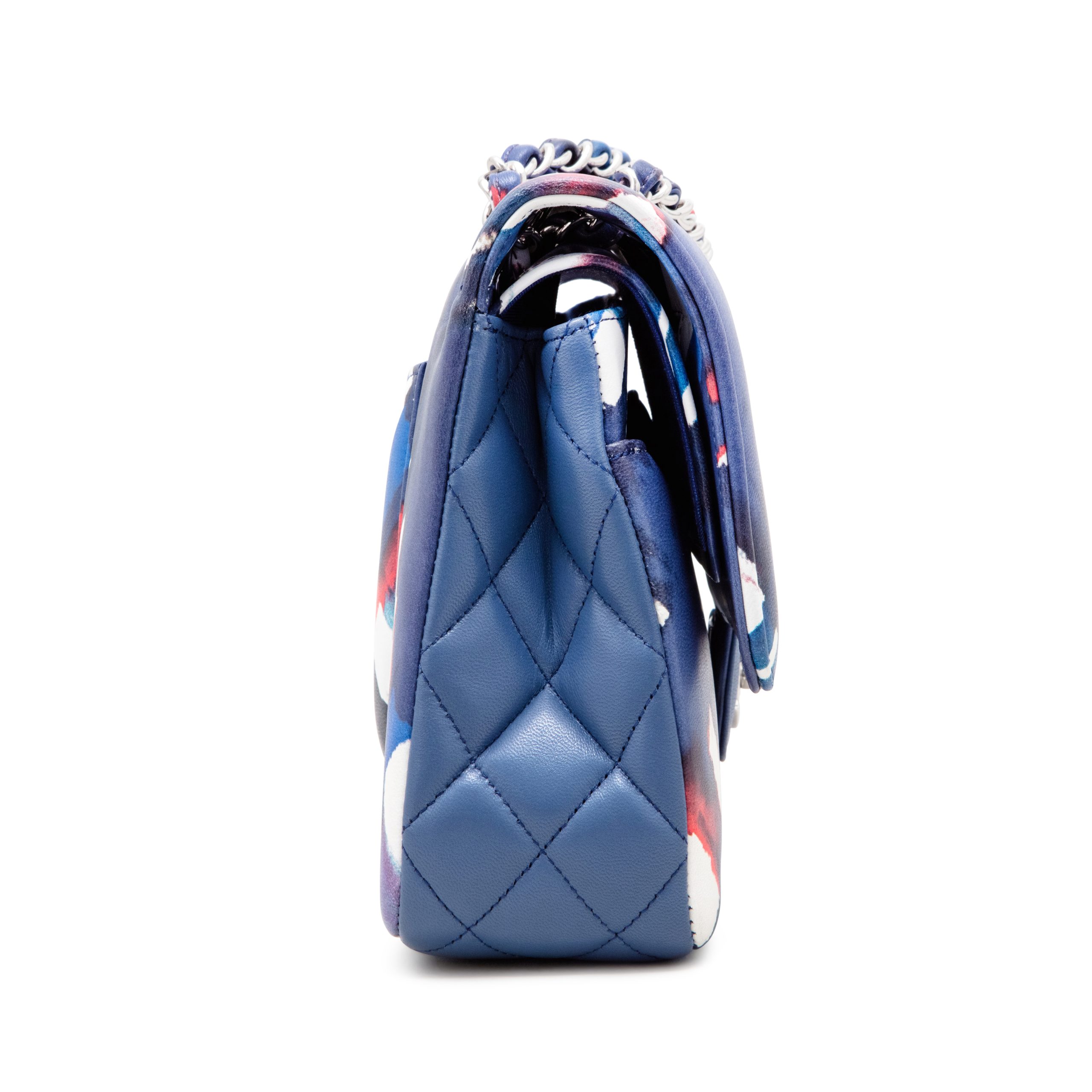 Blue Multicolor Airline Printed Lambskin Medium Double Flap Bag Silver Hardware, 2017
