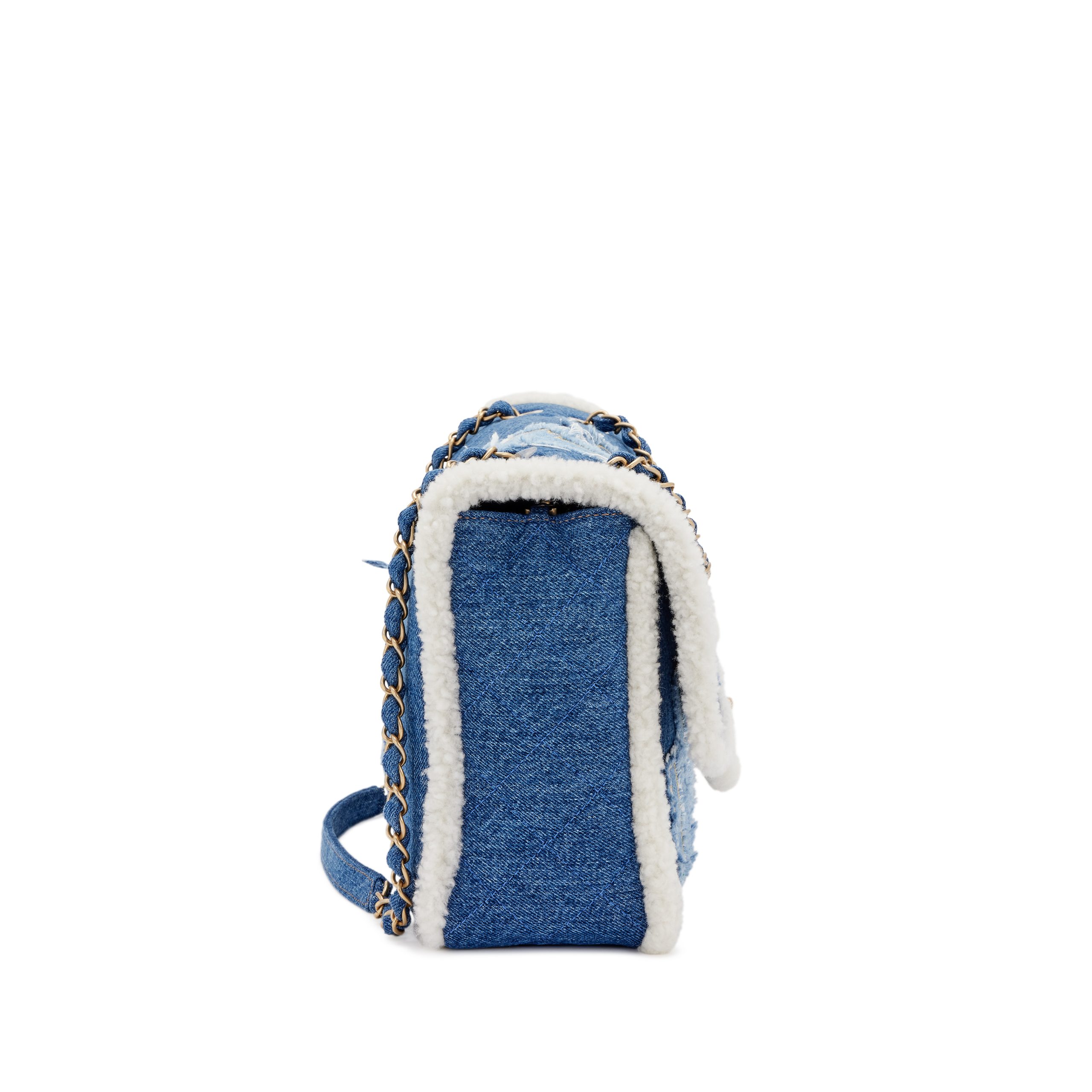 Blue Denim, White Shearling Paris-New York Hieroglyph Maxi Flap Bag Gold Hardware, 2019