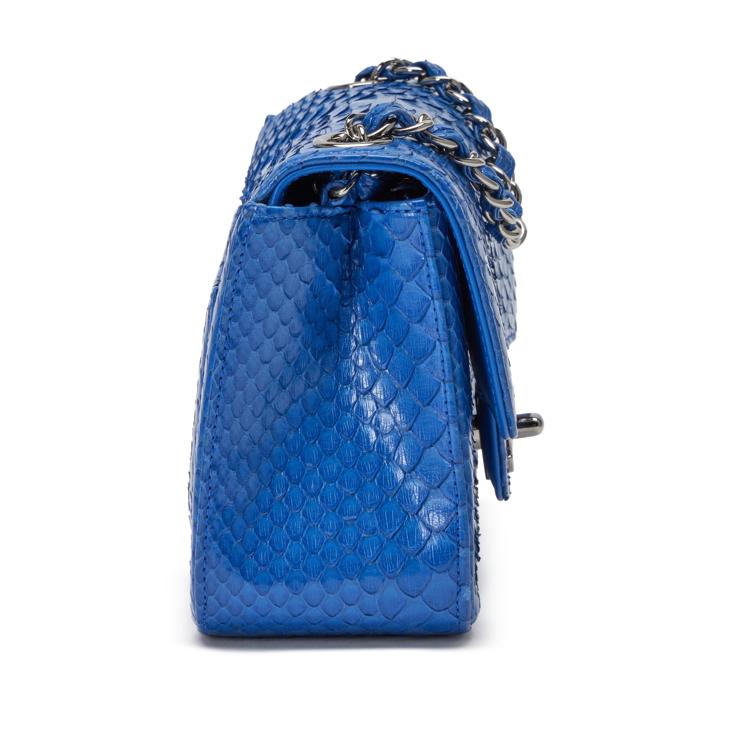 Bright Blue Python Mini Square Classic Single Flap Bag Ruthenium Hardware, 2016