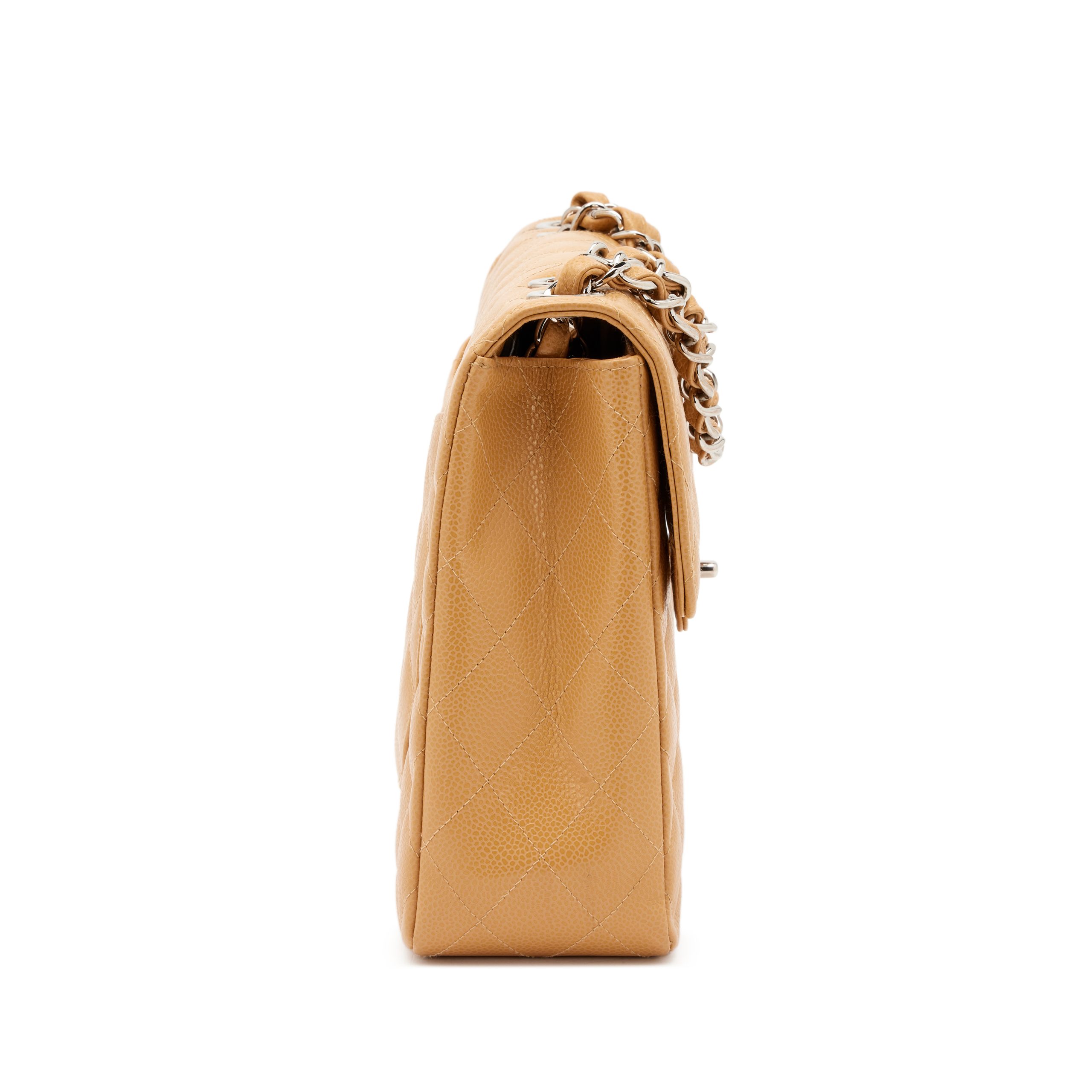 Camel Beige Quilted Caviar Square Classic Jumbo Flap Silver Hardware, 2003-2004