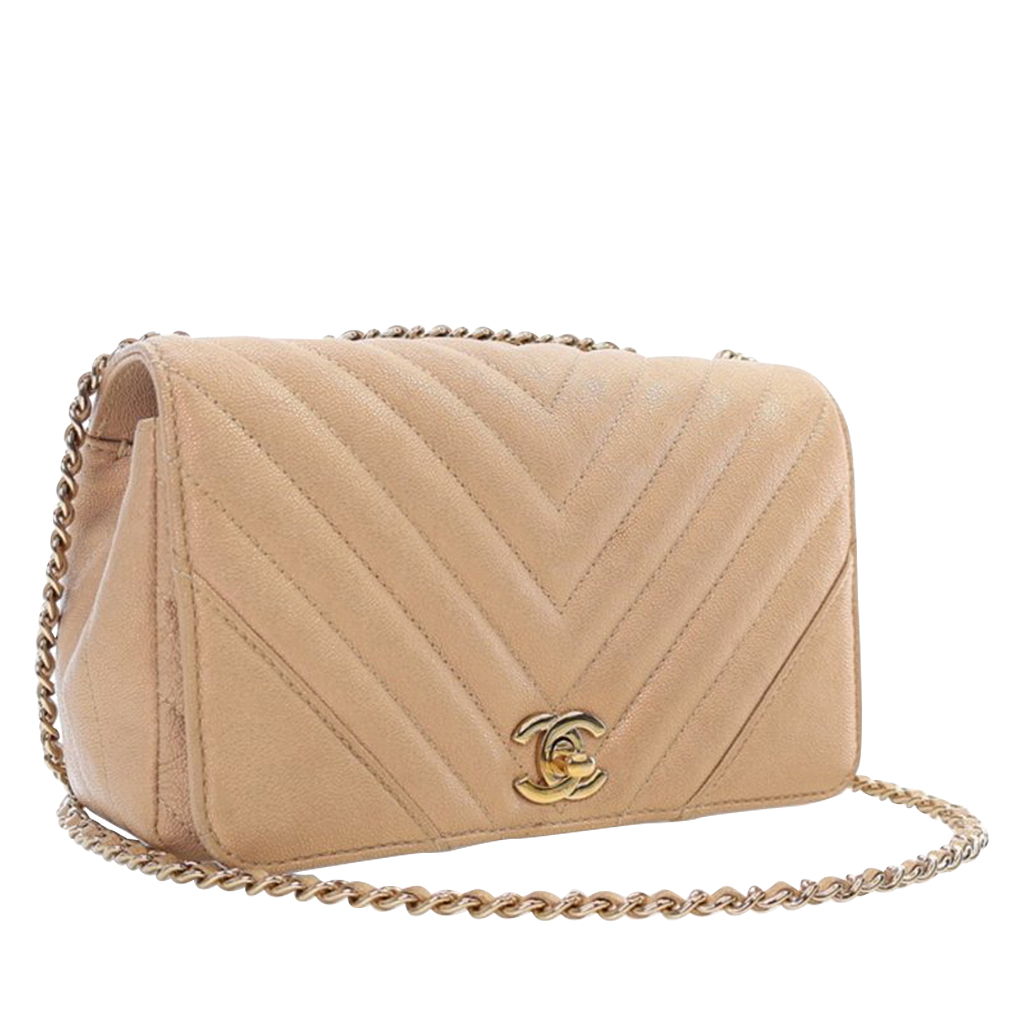 Gold Iridescent Calfskin Quilted Chevron Mini Statement Flap Bag Gold Hardware, 2019