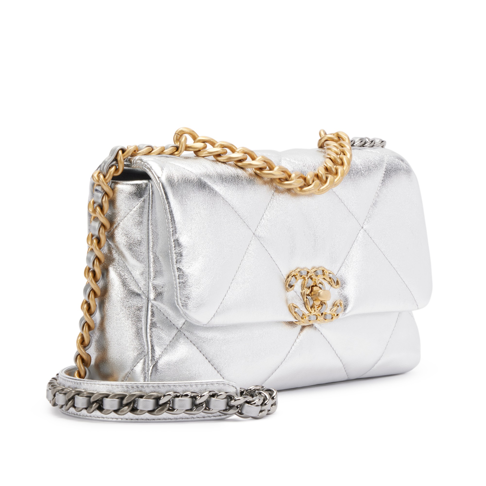 Silver Quilted Lambskin Medium 19 Gold and Silver Hardware, 2021