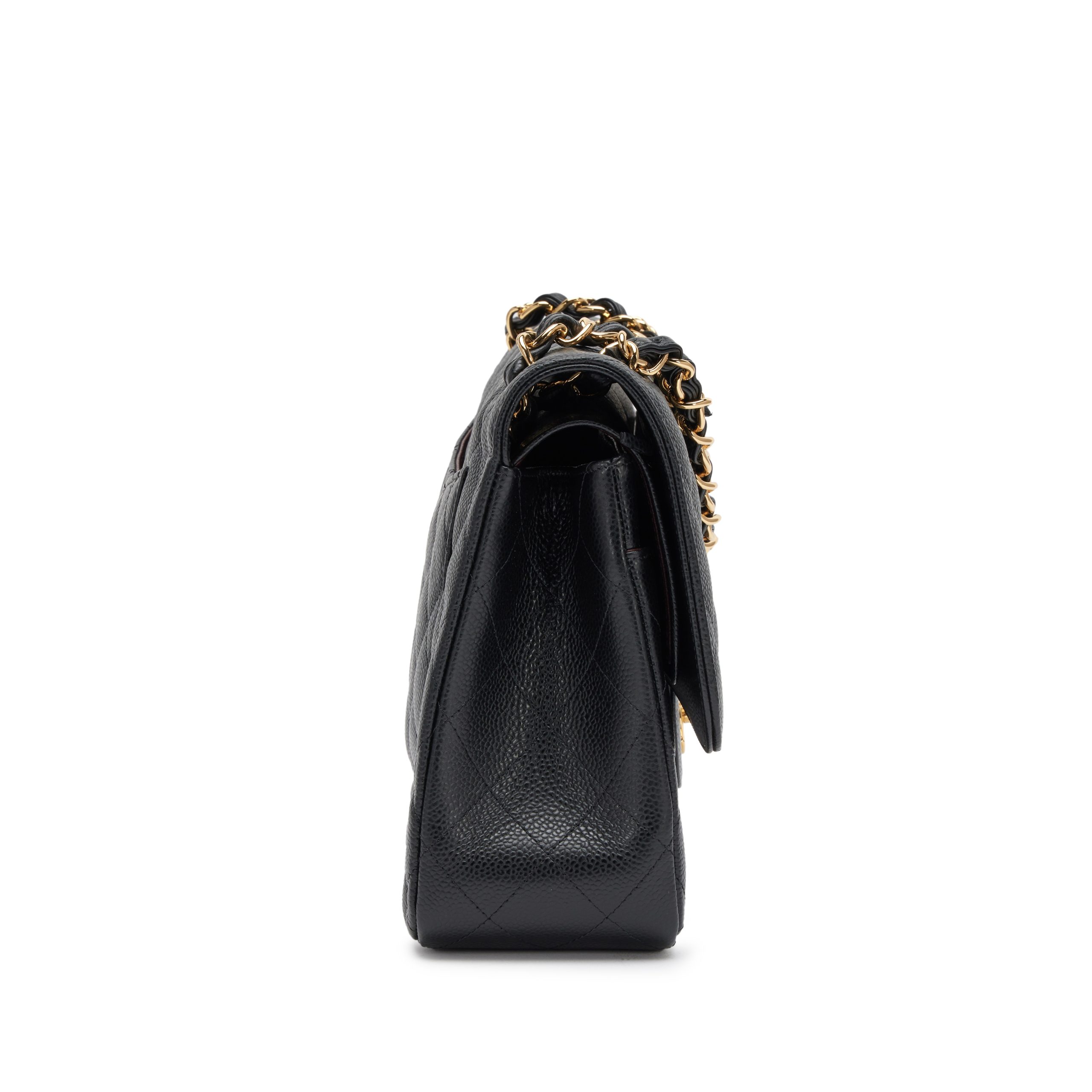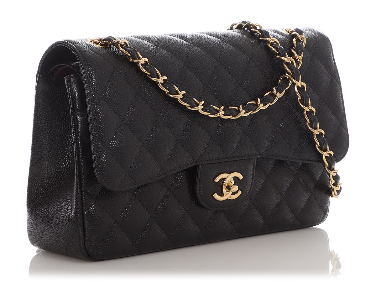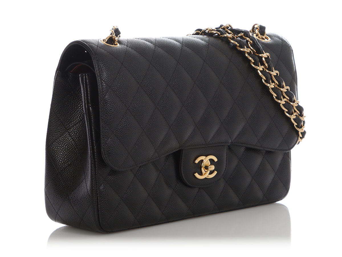 Black Quilted Caviar Jumbo Classic Double Flap Bag Gold Hardware, 2018