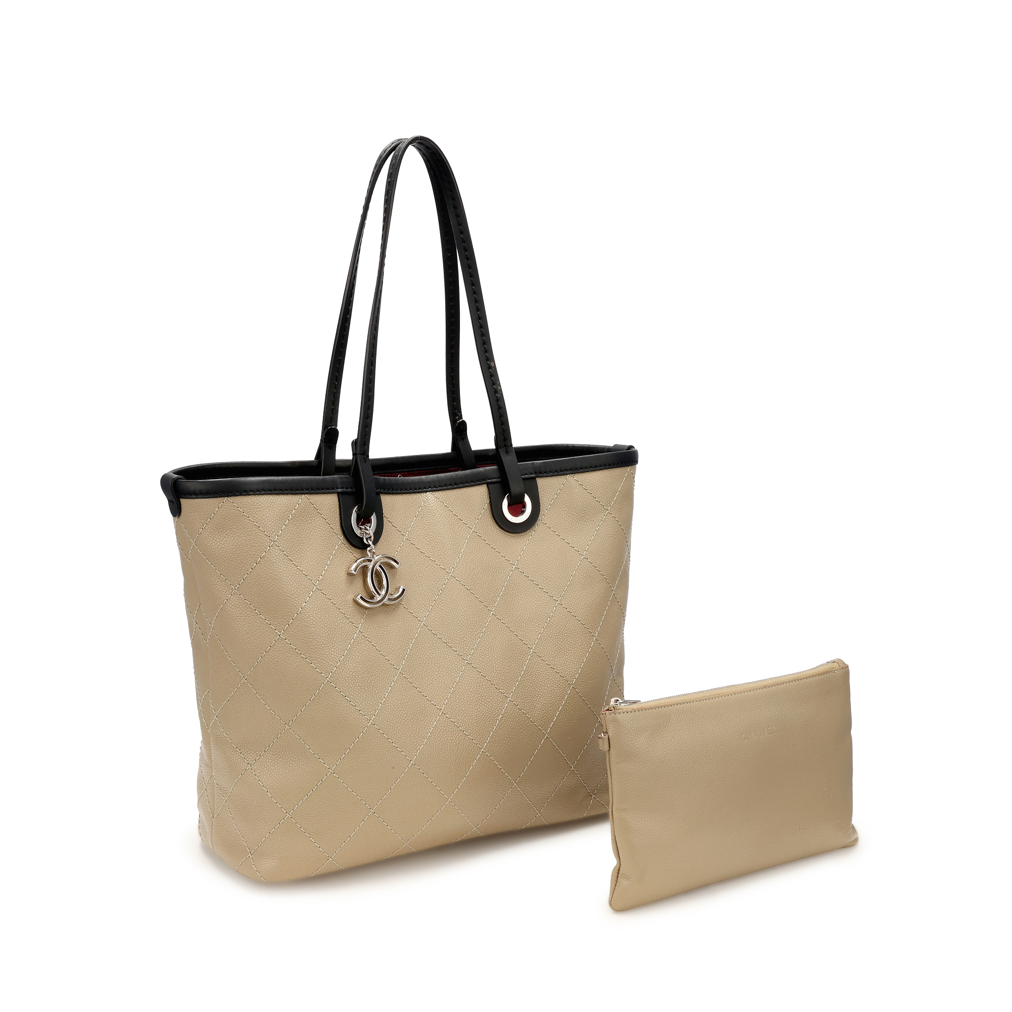 Grey Quilted Caviar Shopping Tote Silver Hardware, 2014