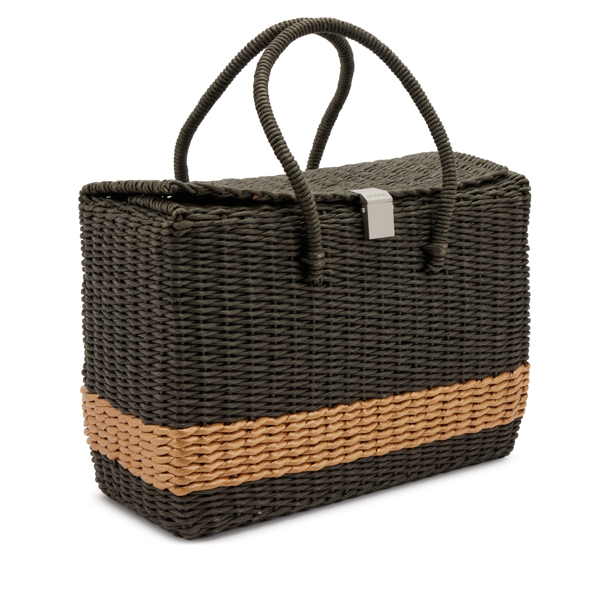 Charcoal Wicker Picnic Bag Silver Hardware, 1997-1999