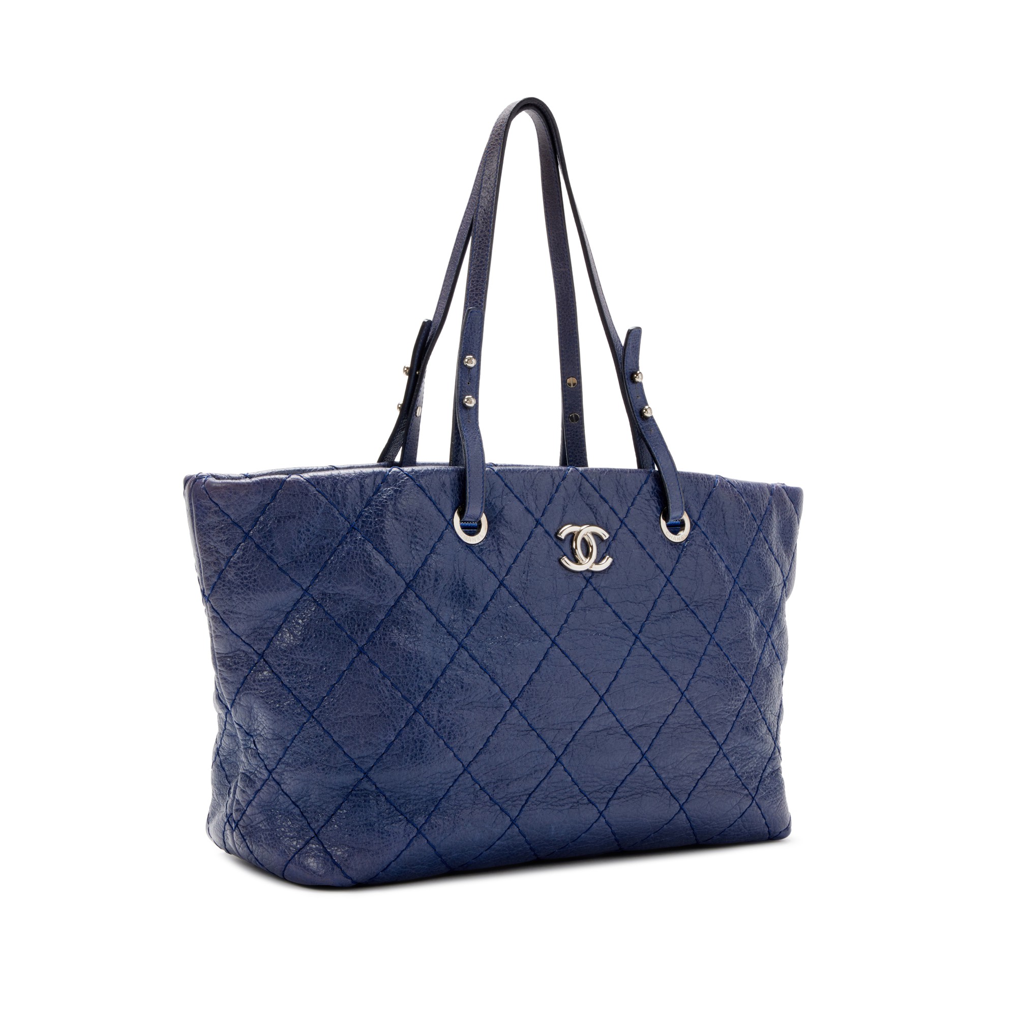 Navy Blue and Black Quilted Rue Cambon Shopping Tote Silver Hardware, 2013-2014