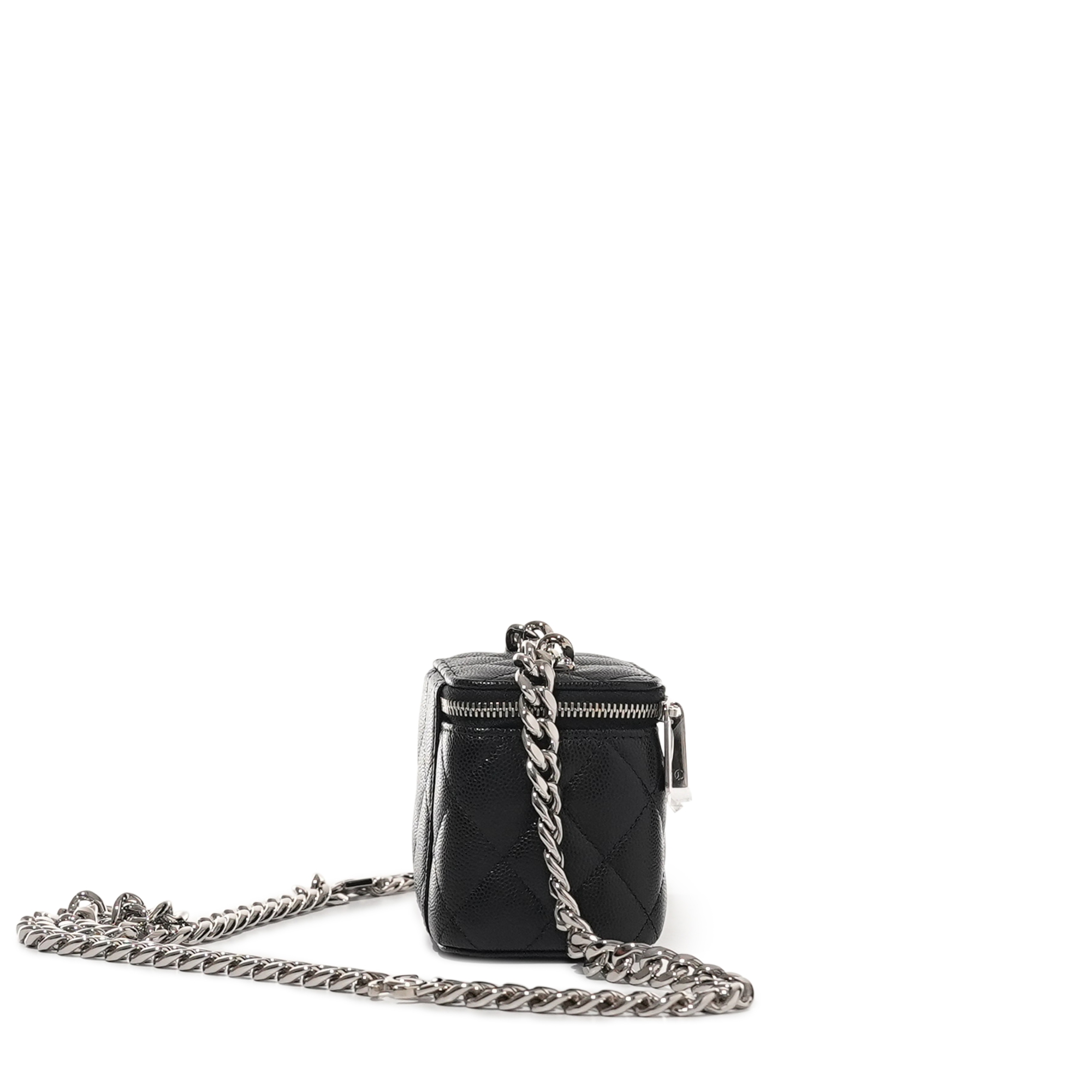Black Quilted Caviar Micro Vanity Case Silver Hardware, 2022