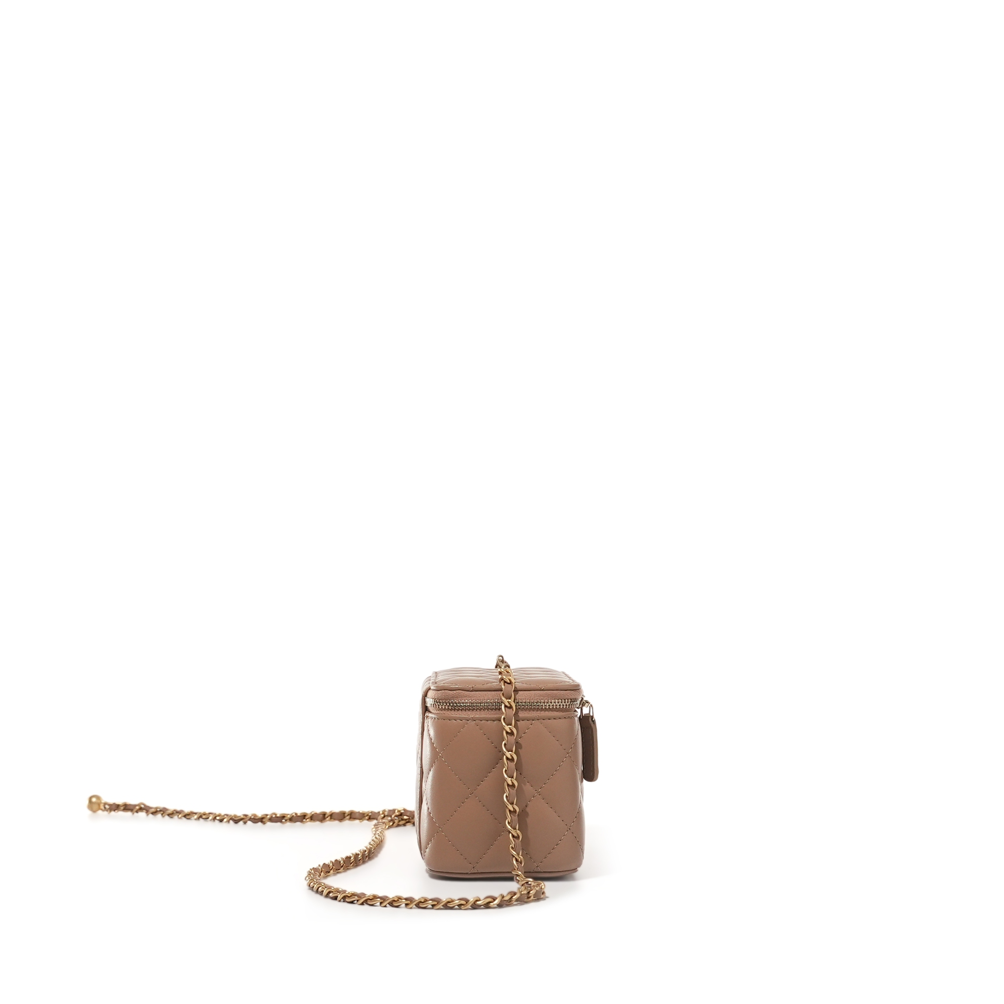 Beige Quilted Lambskin Pearl Crush Long Vanity Case Gold Hardware, 2022