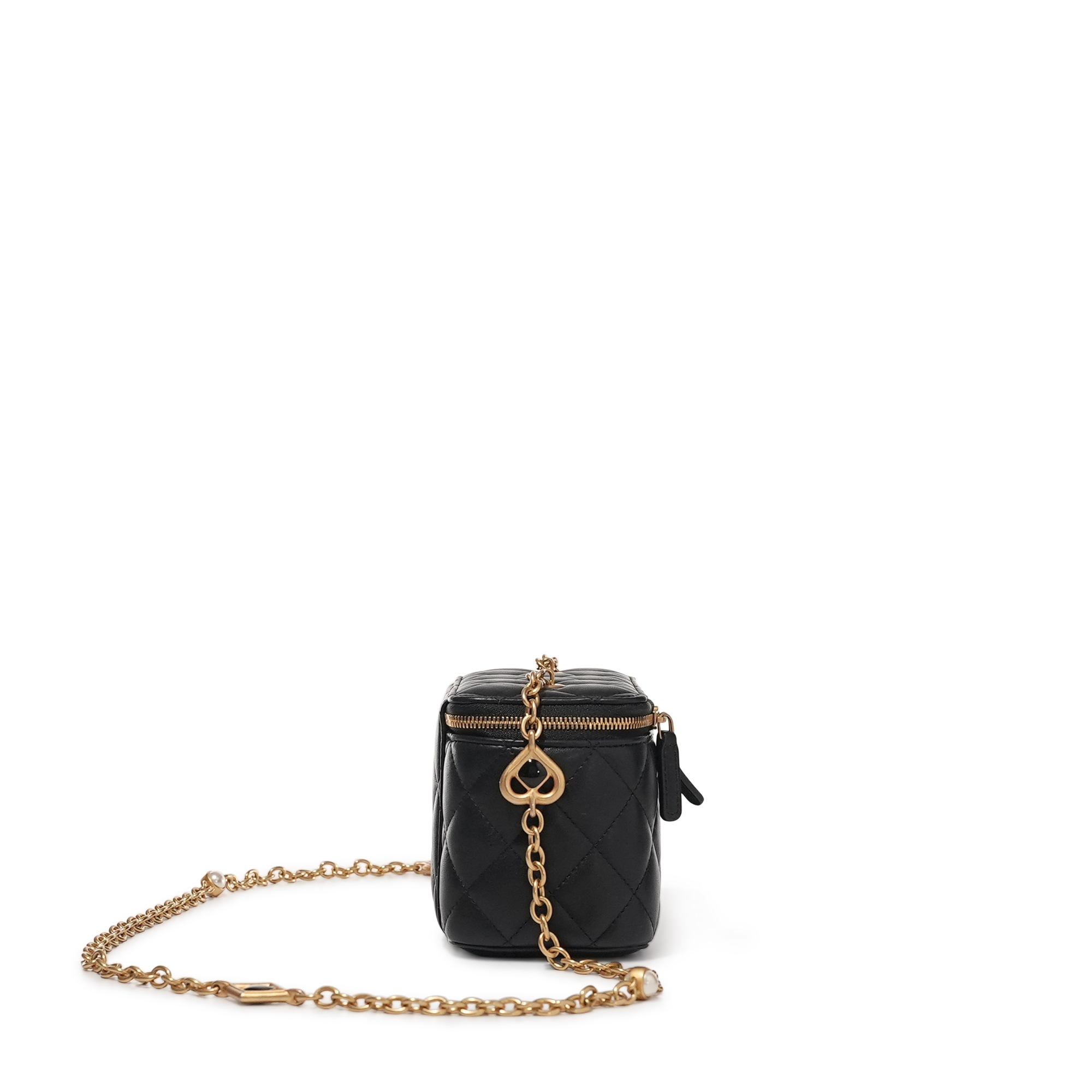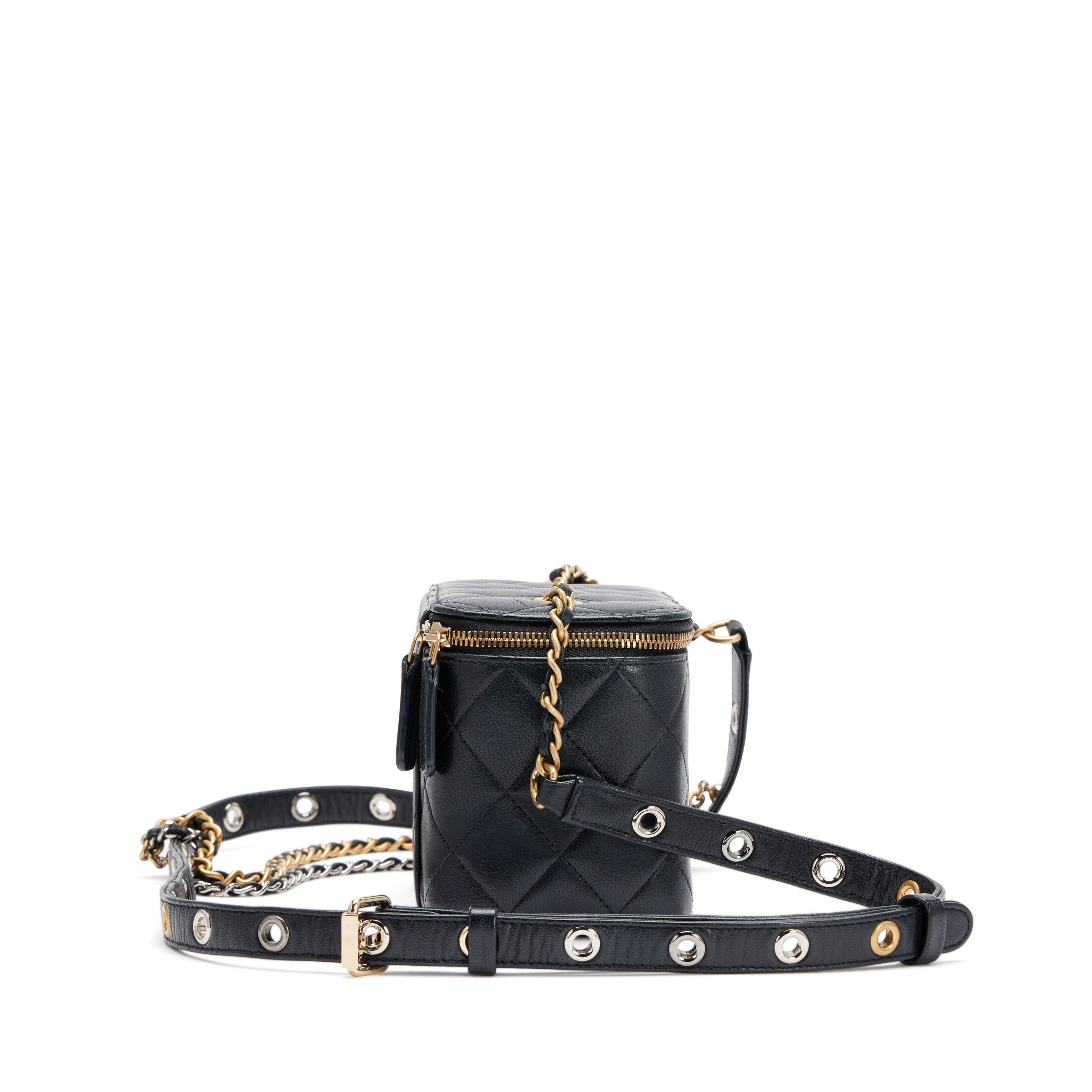 Black Quilted Lambskin Mini Vanity Case Mixed Hardware, 2021
