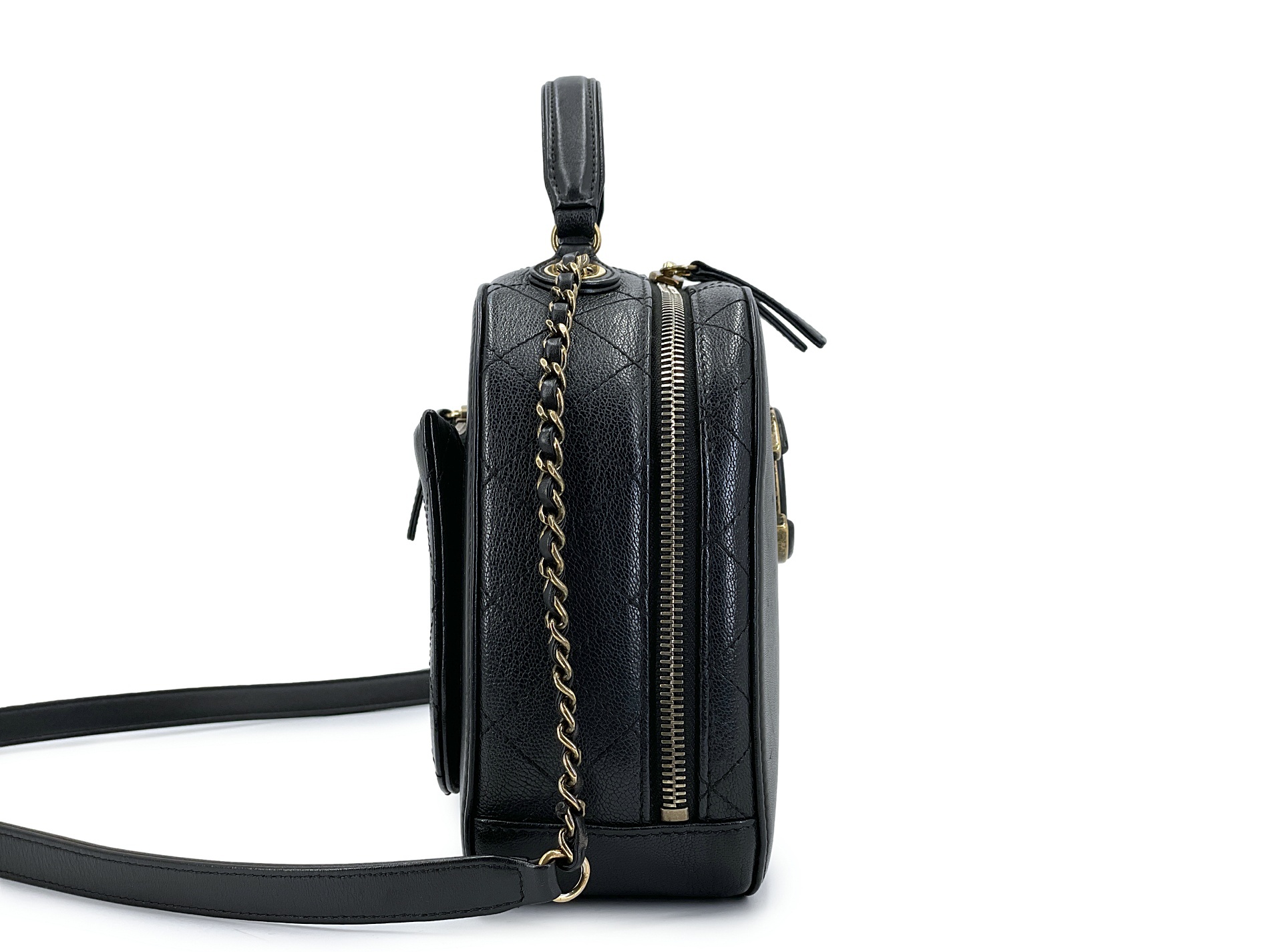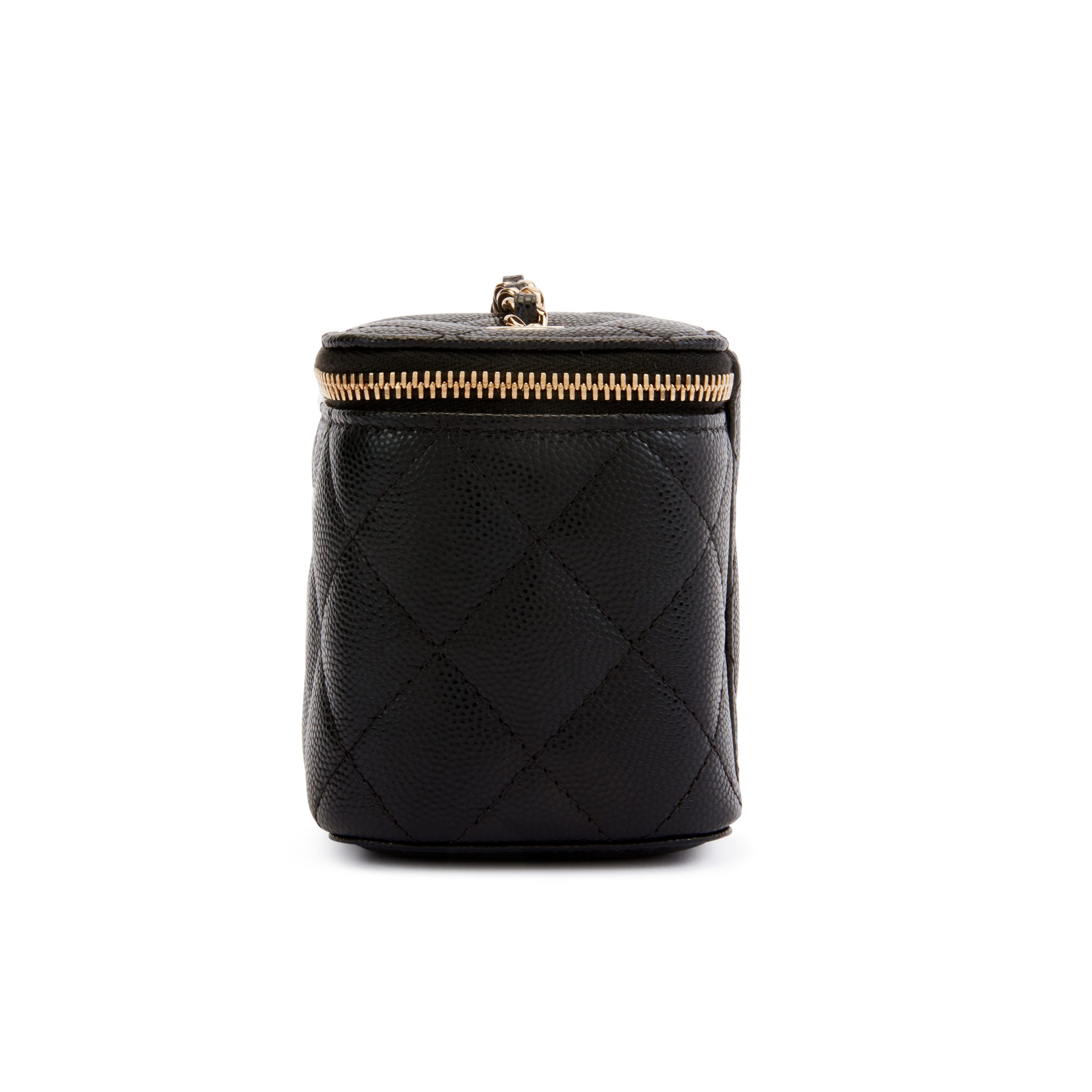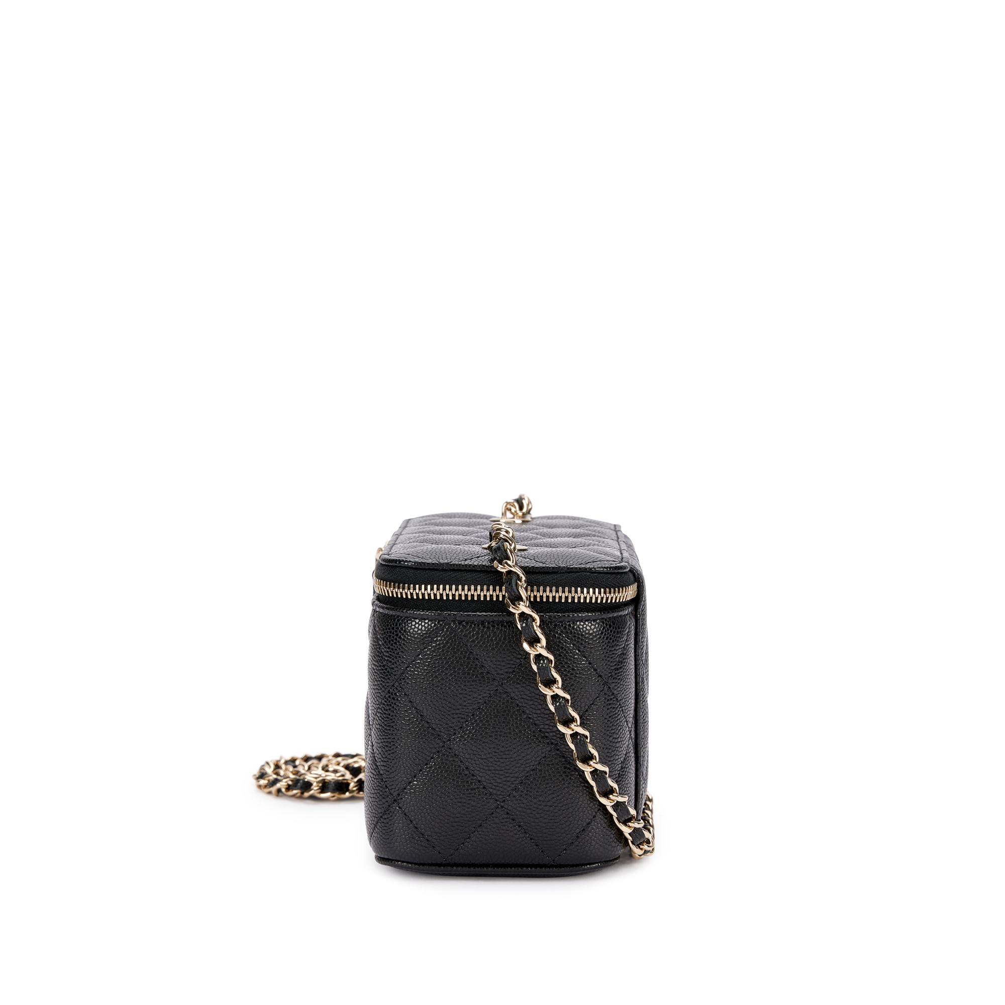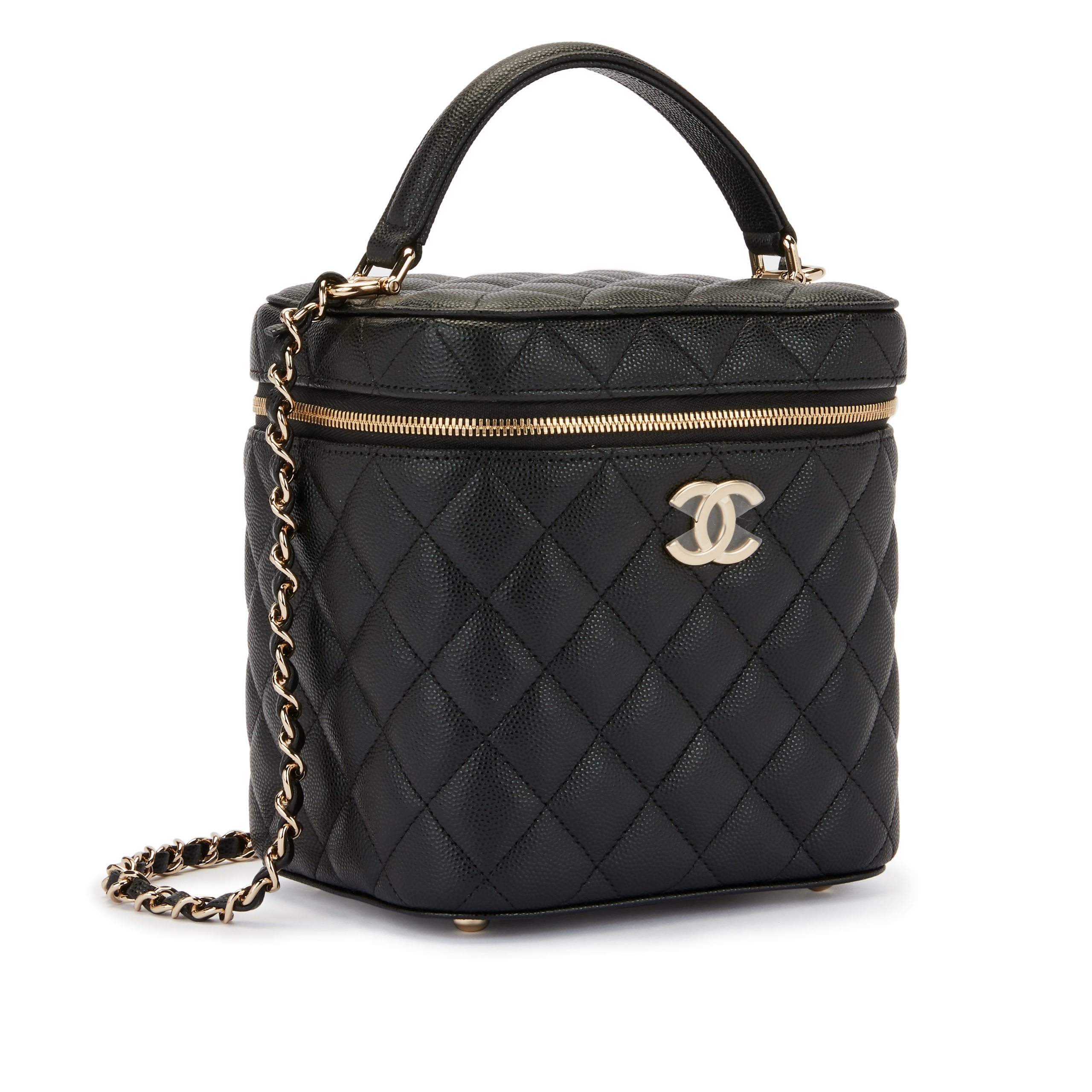 Black Quilted Caviar Mini Vanity Case With Chain Gold Hardware, 2021