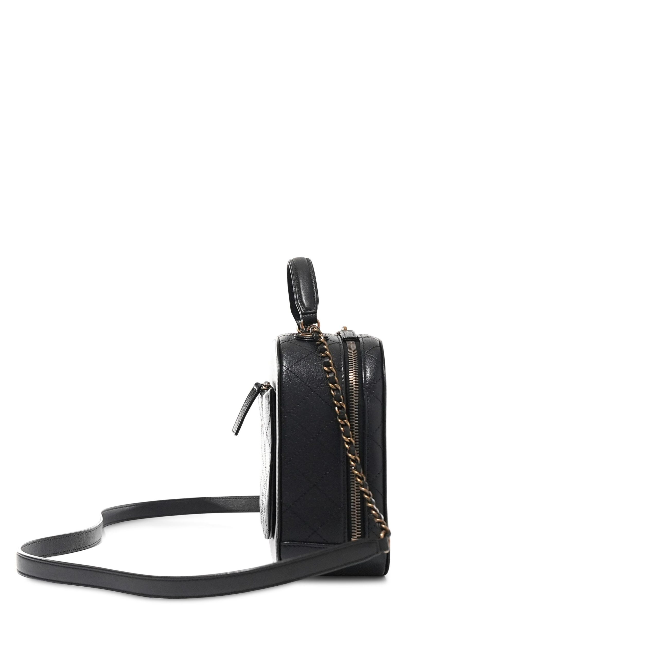 Black Quilted Grained Calfskin Small Vanity Case Gold Hardware, 2021