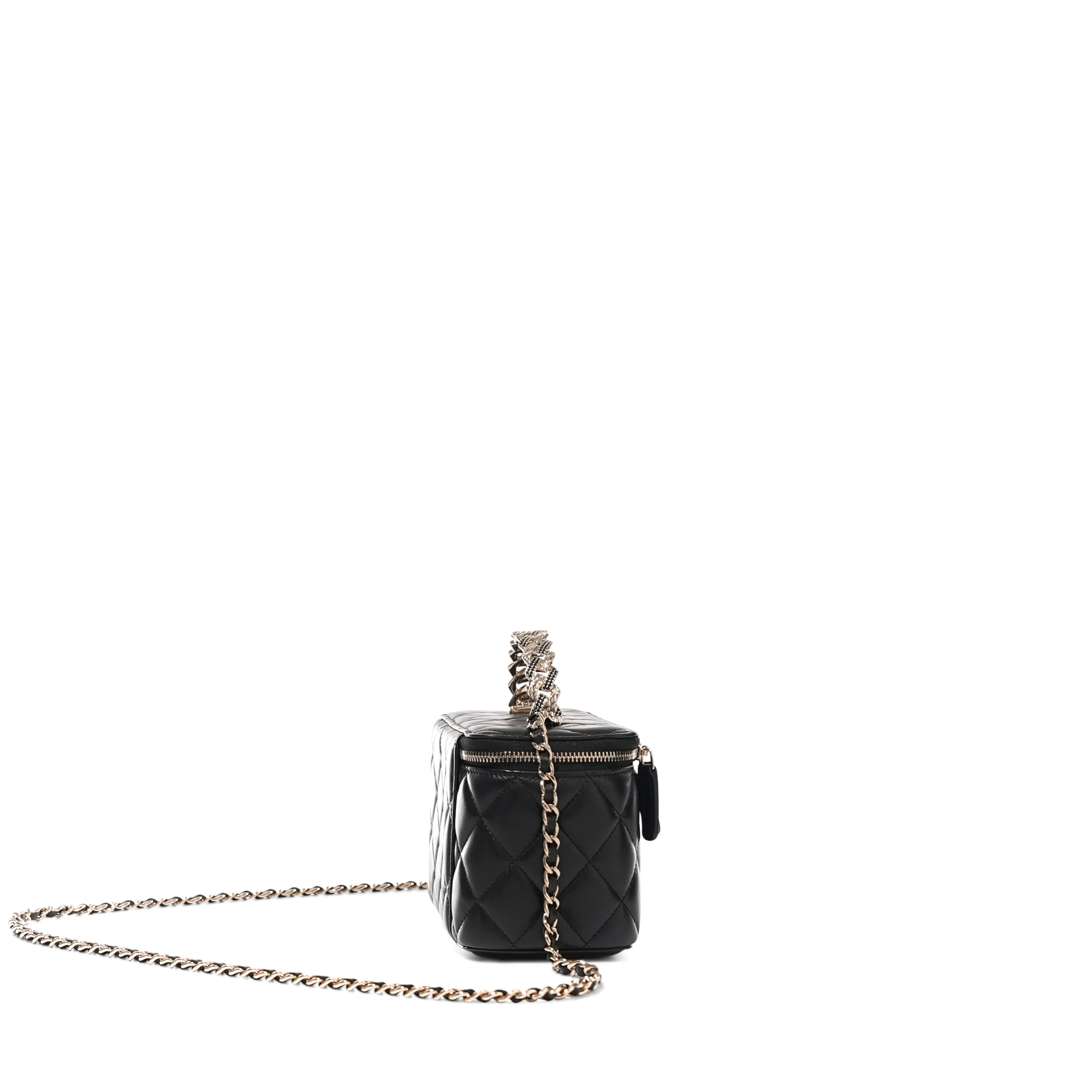 Black Quilted Lambskin Top Handle Vanity Case Crystal and Pale Gold Hardware, 2024