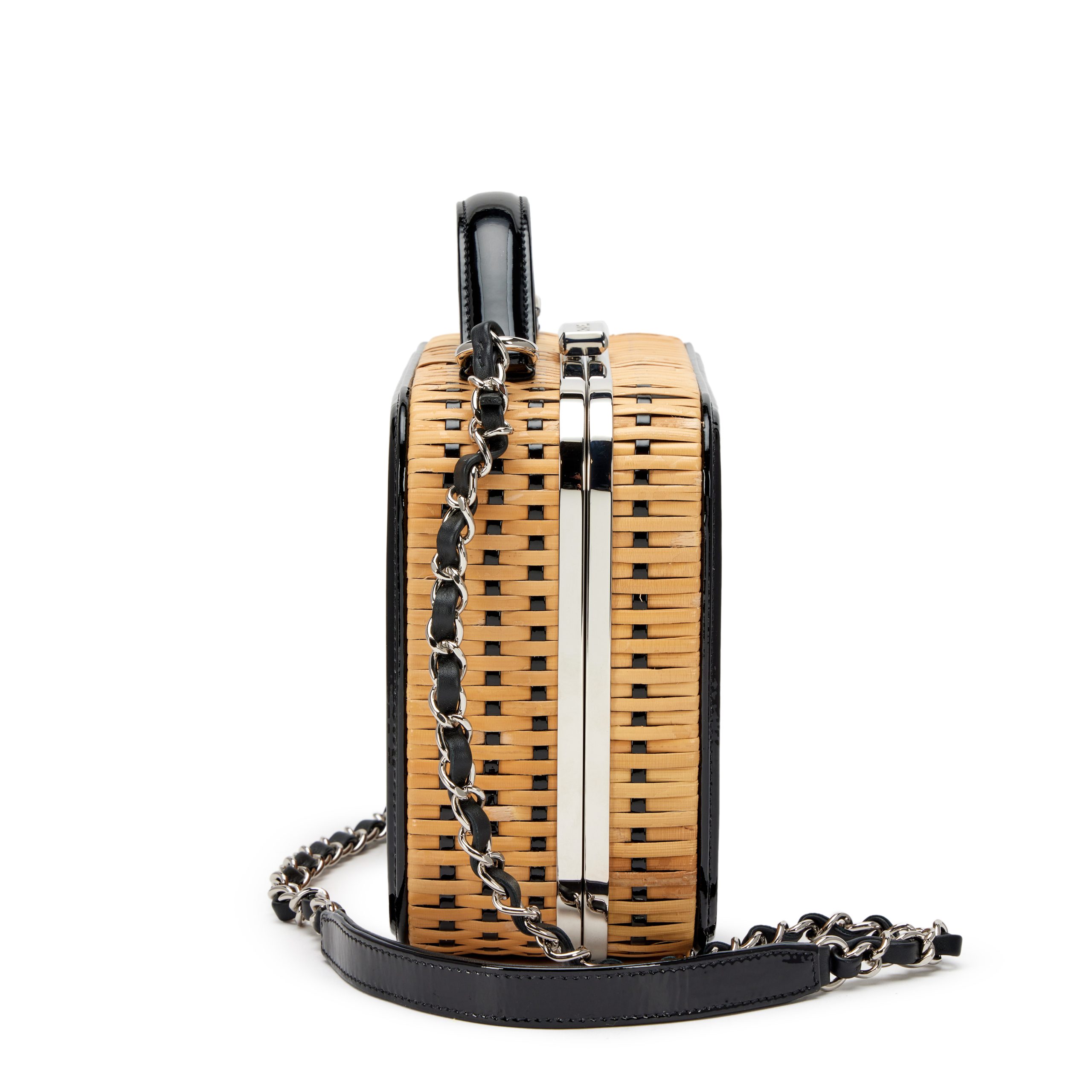 Black Patent Leather and Natural Rattan Wicker CC Filigree Medium Vanity Case Silver Hardware, 2019