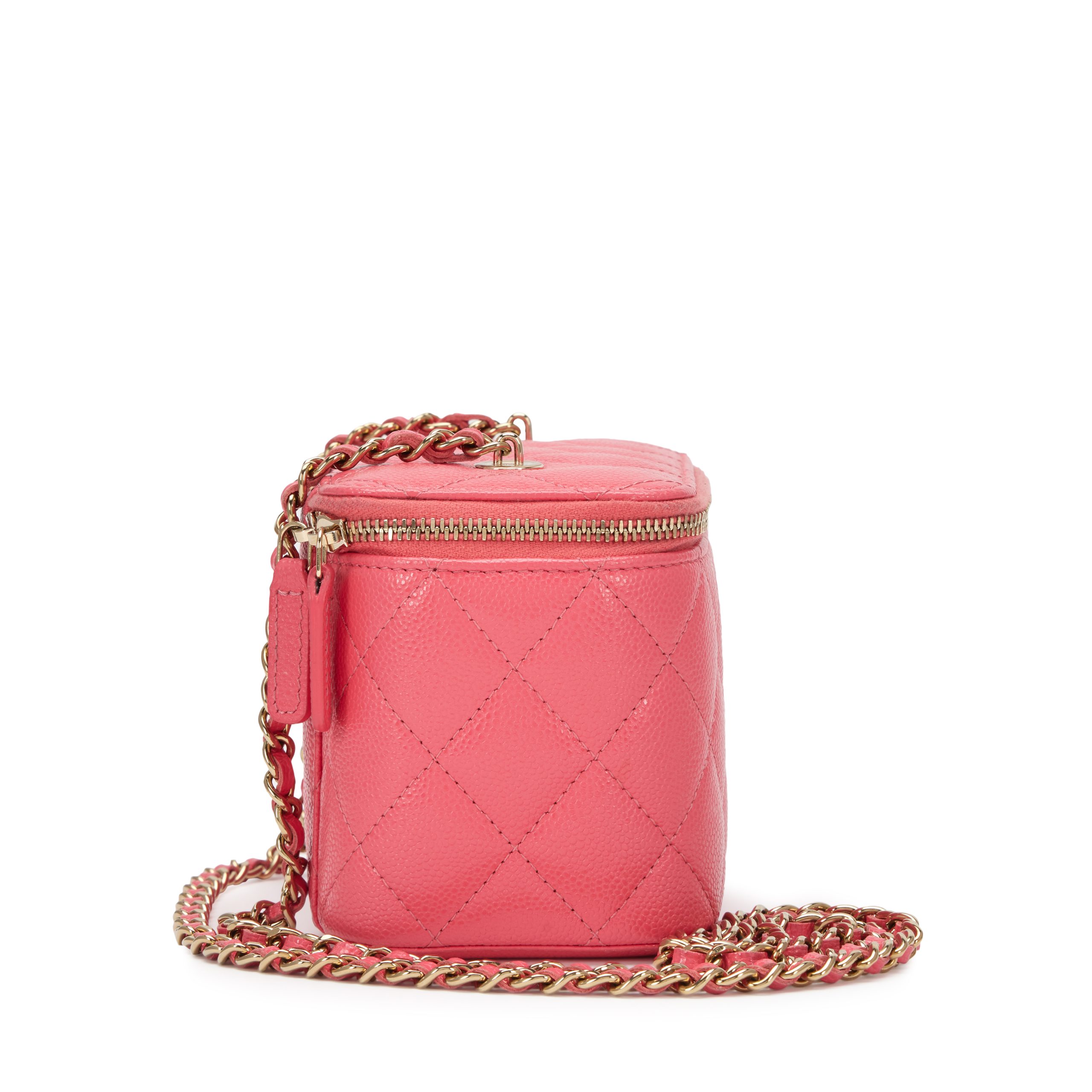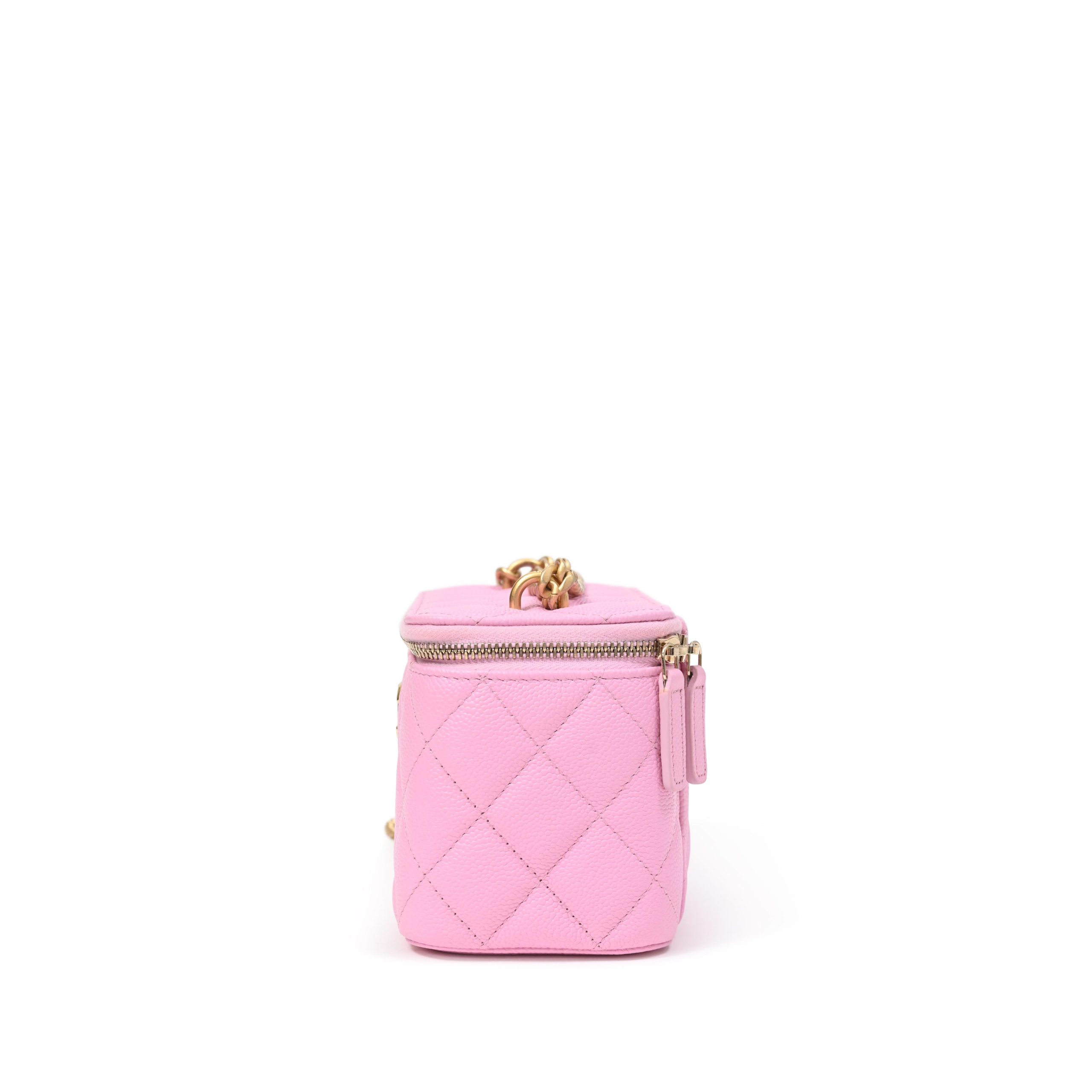 Pink Quilted Caviar Small Vanity Case With Chain Gold Hardware, 2023