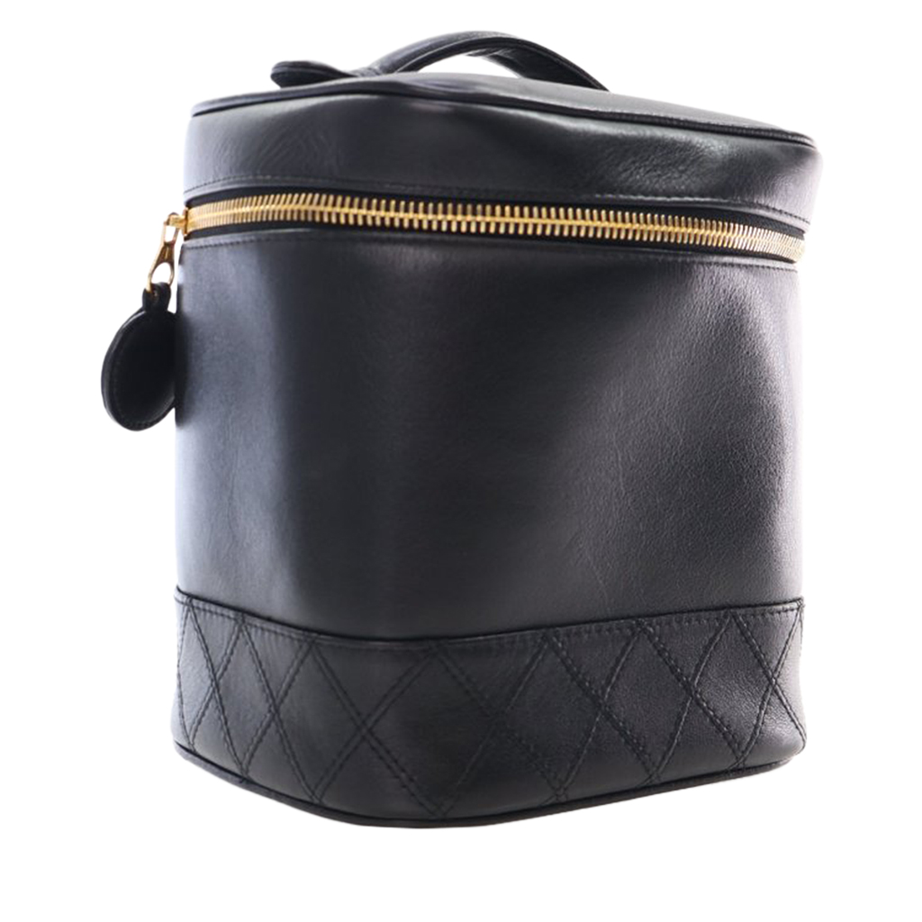 Vintage Black Calfskin Vanity Case Gold Hardware, 1996-1997