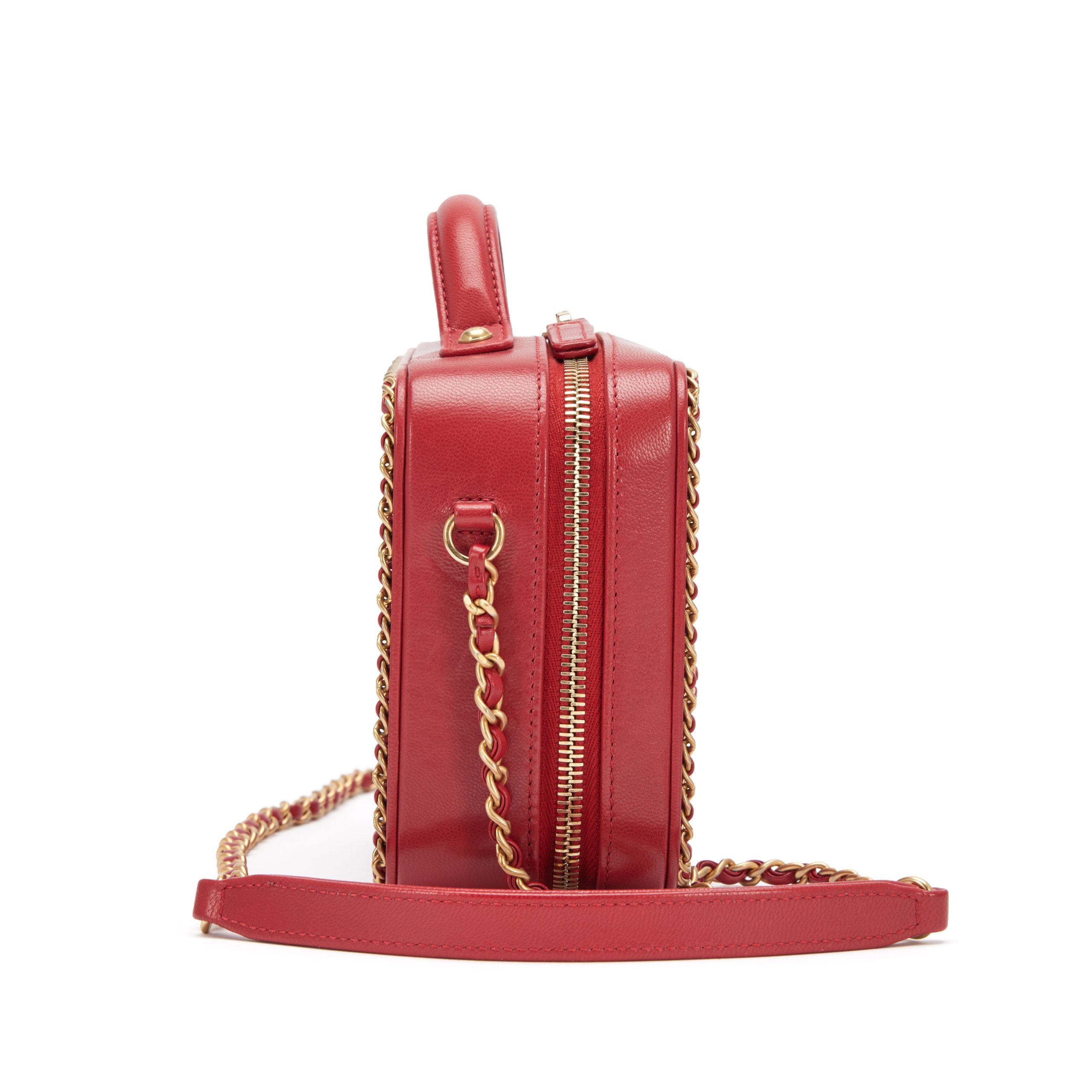 Red Quilted Goatskin Small CC Filigree Chain Around Vanity Case Gold Hardware, 2019