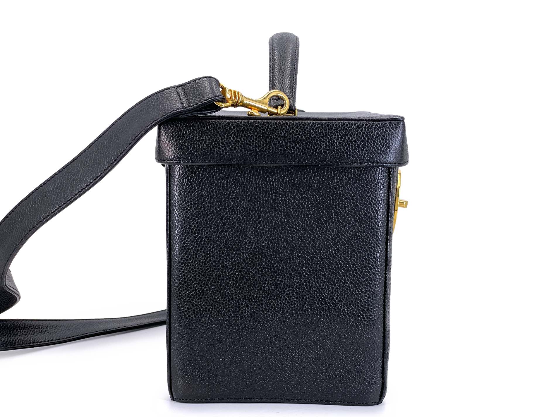 Vintage Black Caviar Timeless Tall Vanity Case Gold Hardware, 1994-1996