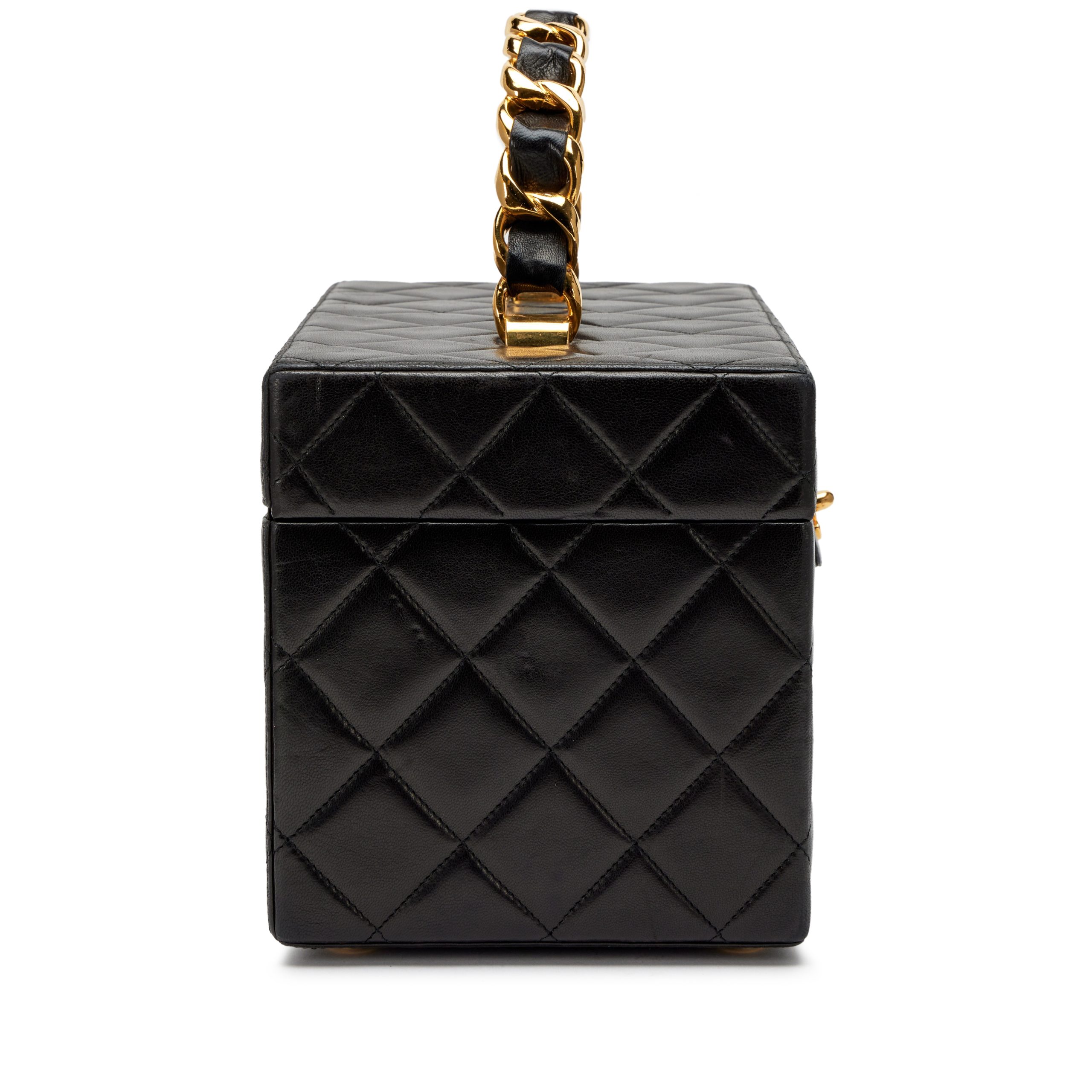Vintage Black Quilted Lambskin Large Vanity Box Bag Gold Hardware, 1994-1996