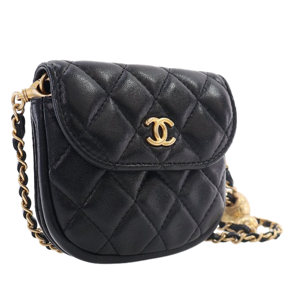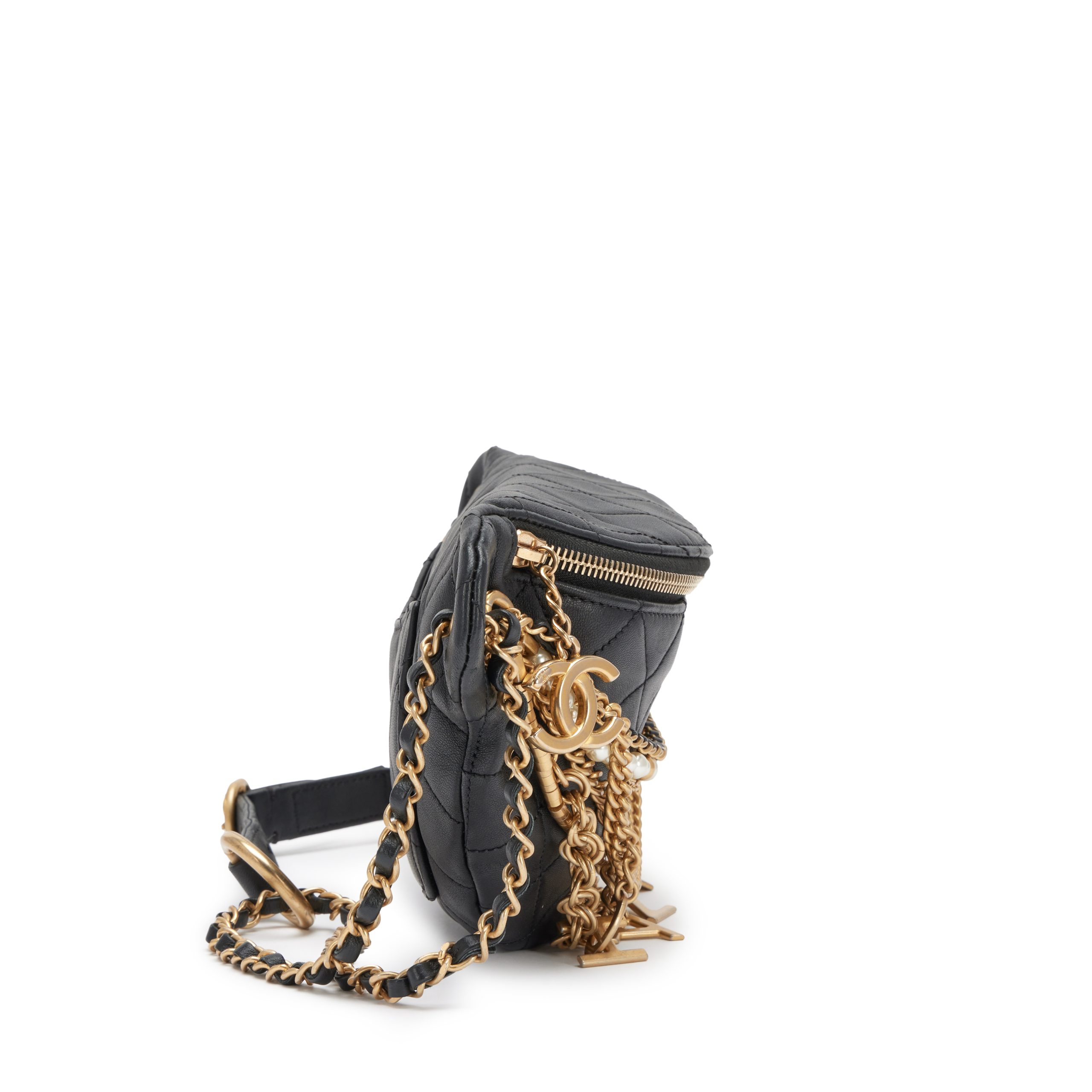 Black Quilted Lambskin Mini Pearl Crush Waist Bag Aged Gold Hardware, 2019