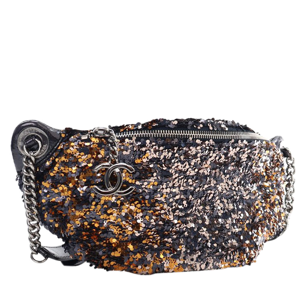 Navy Blue Glazed Calfskin Multicolor Sequin Waist Bag Silver Hardware, 2018