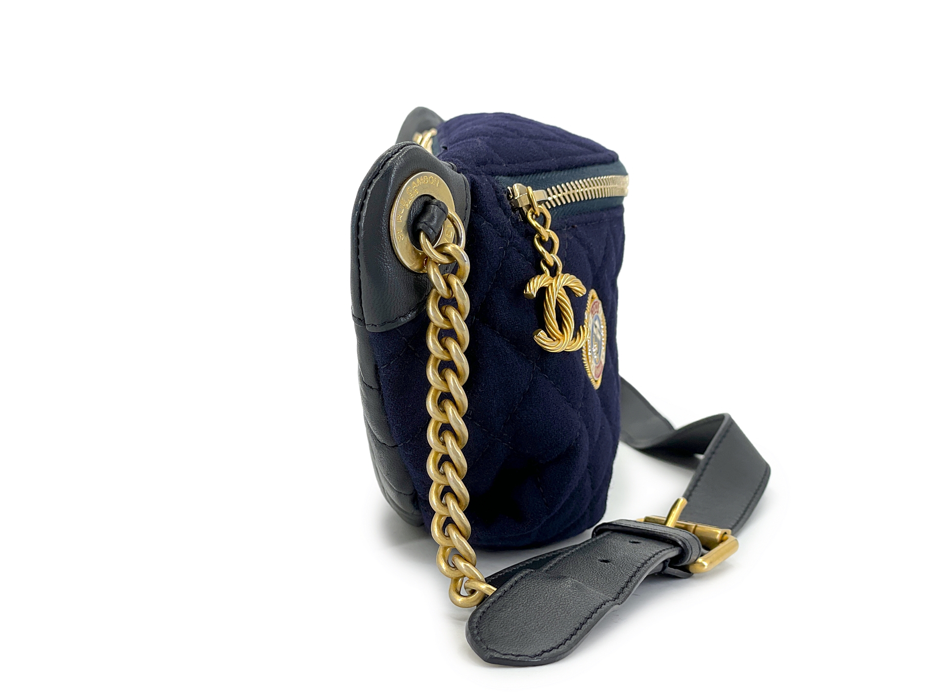 Navy Blue Quilted Wool and Lambskin Paris-Hamburg Sailor Charms Fanny Pack Bum Bag Gold Hardware, 2018